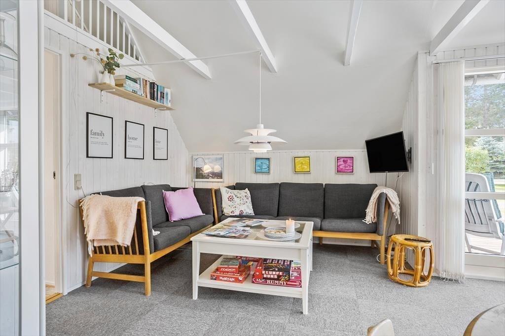 Når du træder indenfor i dette hyggelige sommerhus, vil du straks føle dig hjemme. Huset er indrettet med fritlagte bjælker og stemningsfulde møbler, som skaber en varm og indbydende atmosfære. Her kan I samles om hyggelige måltider i det åbne køkken-alrum, hvor lyset strømmer ind fra de store vinduer. Sovepladserne er fordelt på to soveværelser og en hems, hvilket giver jer fleksible muligheder for overnatning. Hvert værelse er indrettet med omtanke, så I kan slappe af og få en god nats søvn efter en dag fyldt med oplevelser. Hemsen vil især være populær hos de yngste gæster, som vil elske at have deres eget lille fristed.