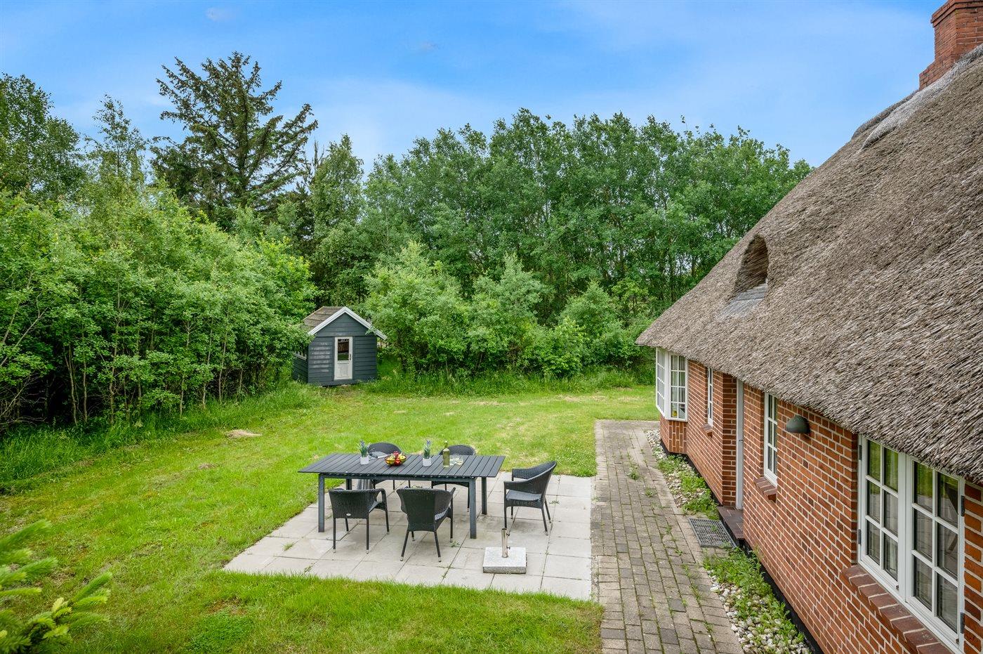 Ferieboligen er beliggende på en 3000 m² stor naturgrund. Der er 2000 m til havet. Der er 1300 m til Vadehavet. Nærmeste forretning er beliggende i en afstand af 600 m. Der er en golfbane i en afstand af 1500 m. Til ferieboligen hører 28 m² terrasseareal. Legehus. Grill til rådighed. Der er installeret stik til opladning af elbil. Type 2 stik. Med 11 kW ladeeffekt. Parkering ved ferieboligen.