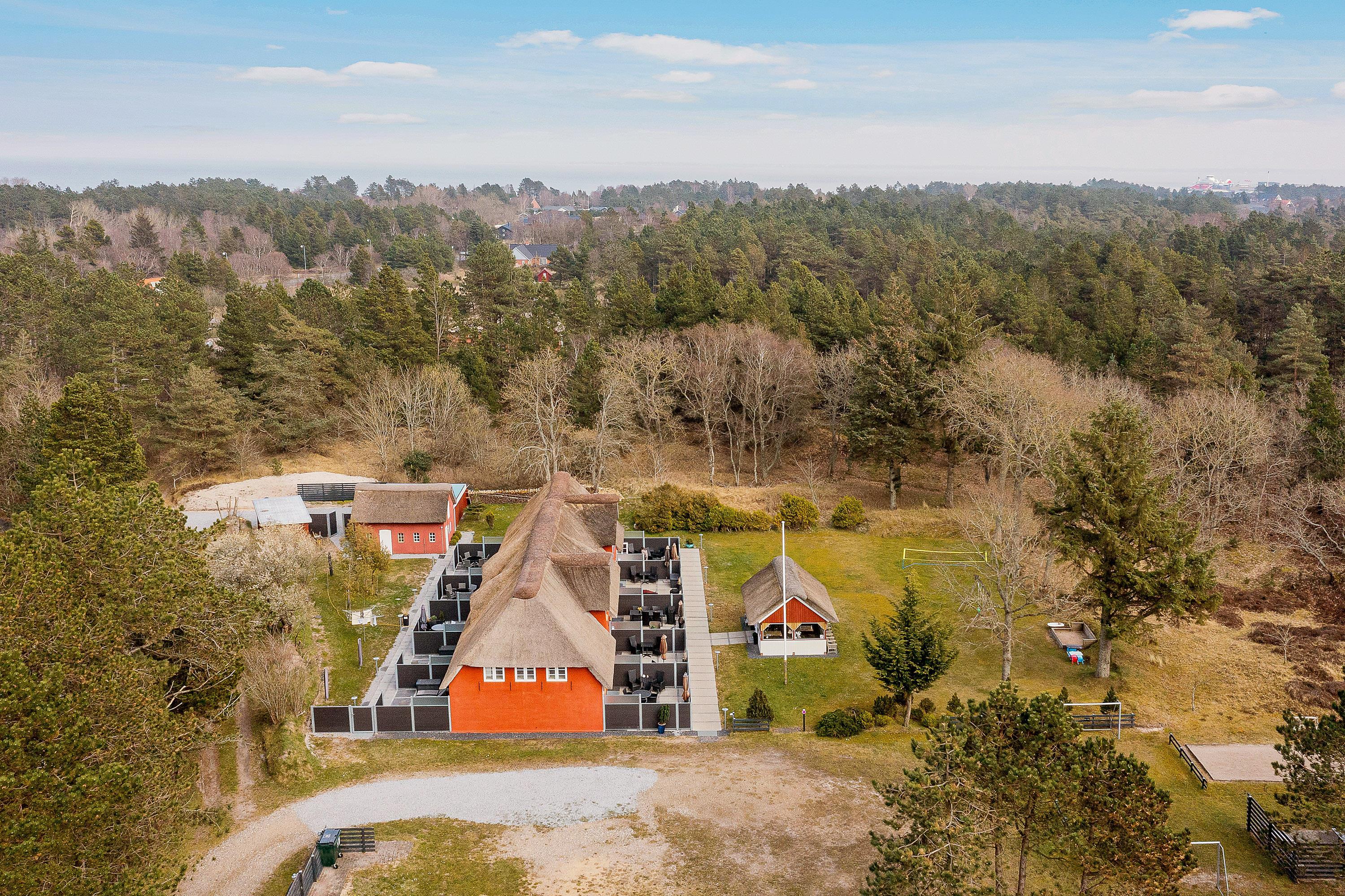 Det er muligt at leje flere af ferieljlighederne, så I kan holde ferie med familie eller venner. Til en lækker grillmiddag er der en udestue, som er tilgængelig for alle ferielejlighederne i komplekset. Her kan I afslutte den begivenhedsrige feriedag på en afslappet måde. En gasgrill står her til jeres rådighed. Mens børnene leger i sandkassen, gynger eller spiller bold i haven, kan forældrene slappe af og nyde et glas vin på den delvist afskærmede terrasse.