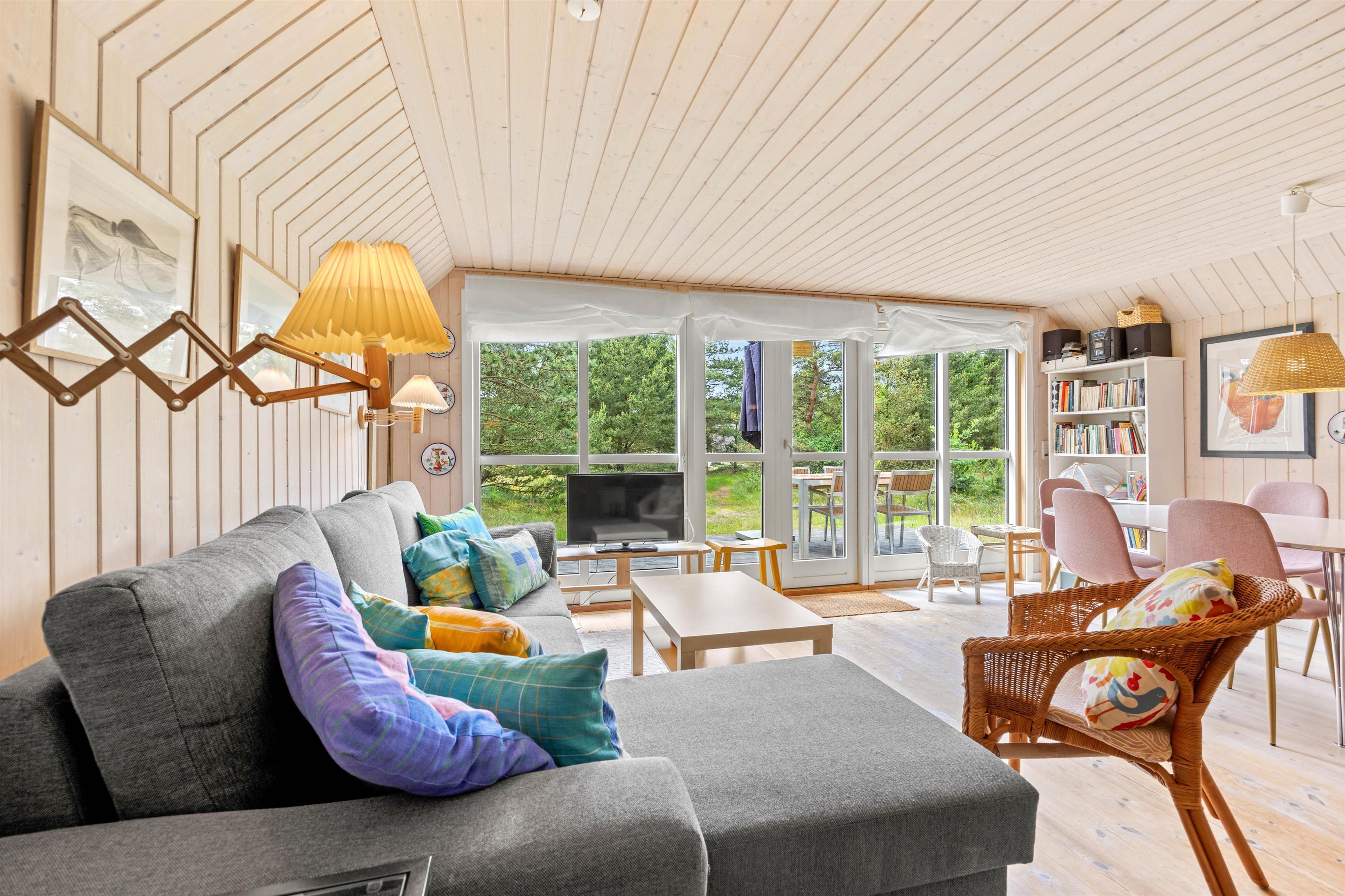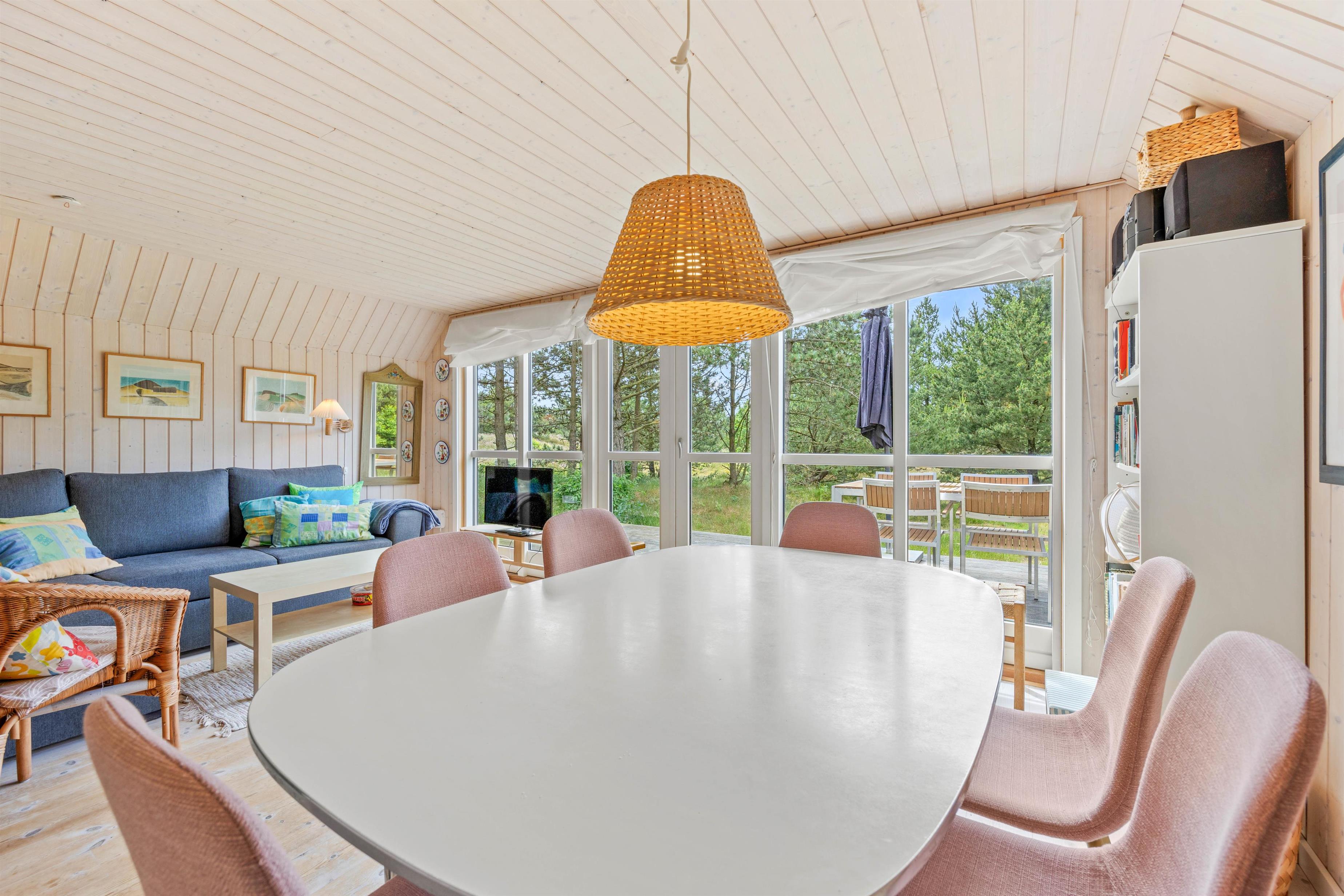 Sommerhuset på Lejrbjergvej 30 har på sine 60 kvadratmeter plads til op til 6 personer, ideelt til familie eller venner, som ønsker det tætte samvær. Midt i det åbne opholdsområde er brændeovnen, som hæver feriestemningen på hyggelige aftener indendørs. Kombineret med en energibesparende og effektiv luft-til-luft varmepumpe, sikres der en behagelig temperatur året rundt, selv når vinden rusker udenfor. Spil et spil ved spisebordet, eller slap af i sofaen med en god bog, eller arrangerer en filmaften, hvor i kan streame jeres yndlings film, via Chromecast.