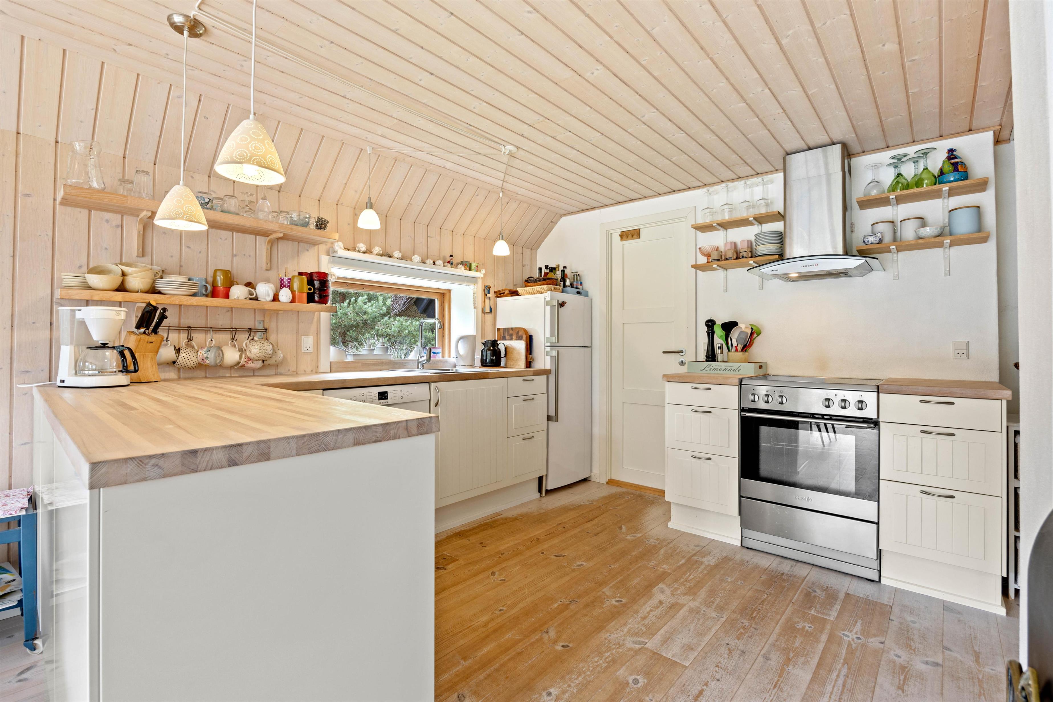 Det åbne køkken indeholder alt, hvad I skal bruge for at forkæle hinanden med lækre måltider, herunder opvaskemaskine. Badeværelset har gulvvarme, og der er både vaskemaskine og tørretumbler til rådighed for jer, så I kan rejse let – og opfriske garderoben i løbet af ferien. Soveværelset er møbleret med to enkeltsenge, som kan sammensættes efter ønske. De 4 øvrige sovepladser er på hemsen, ideelt for børn og unge mennesker.
