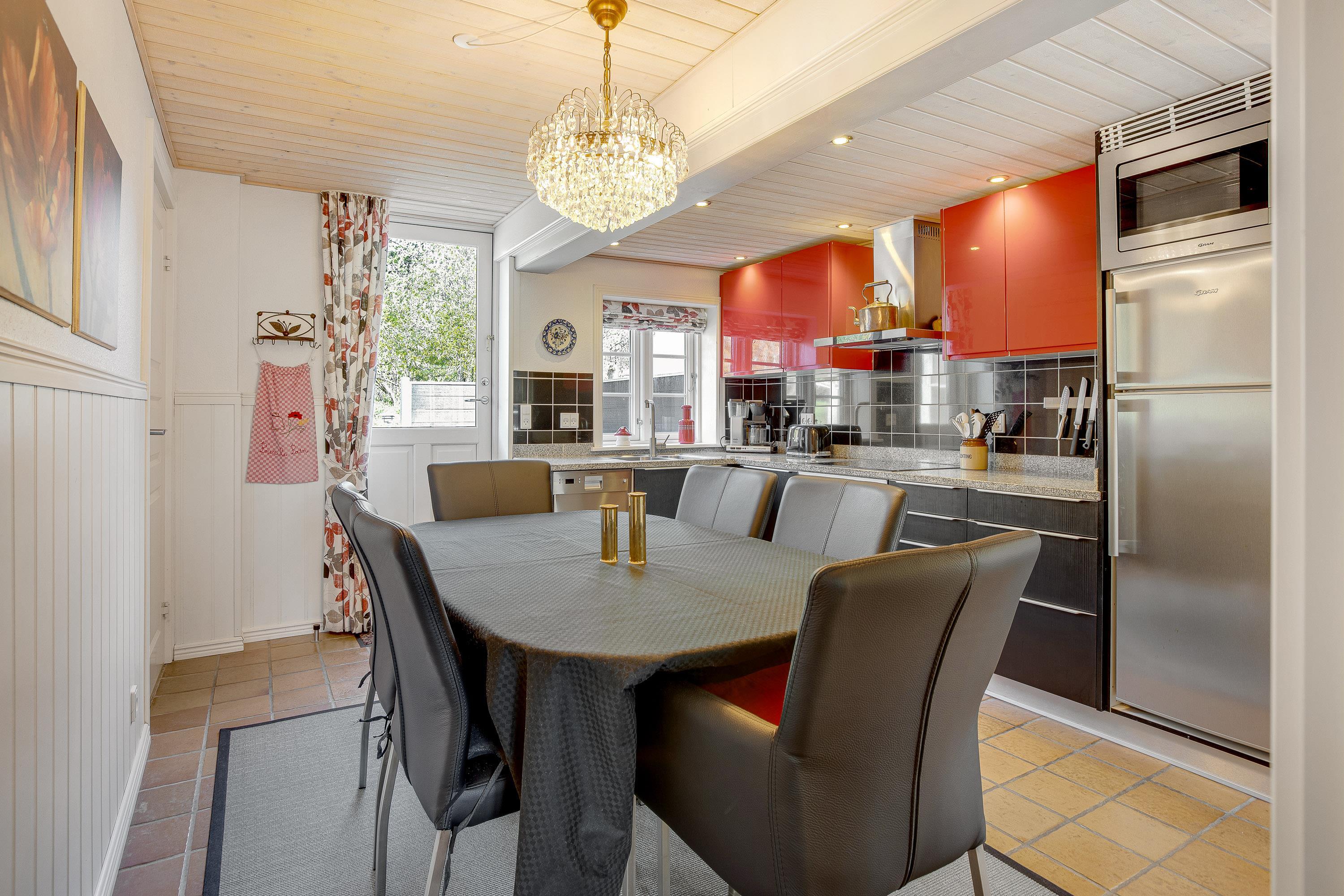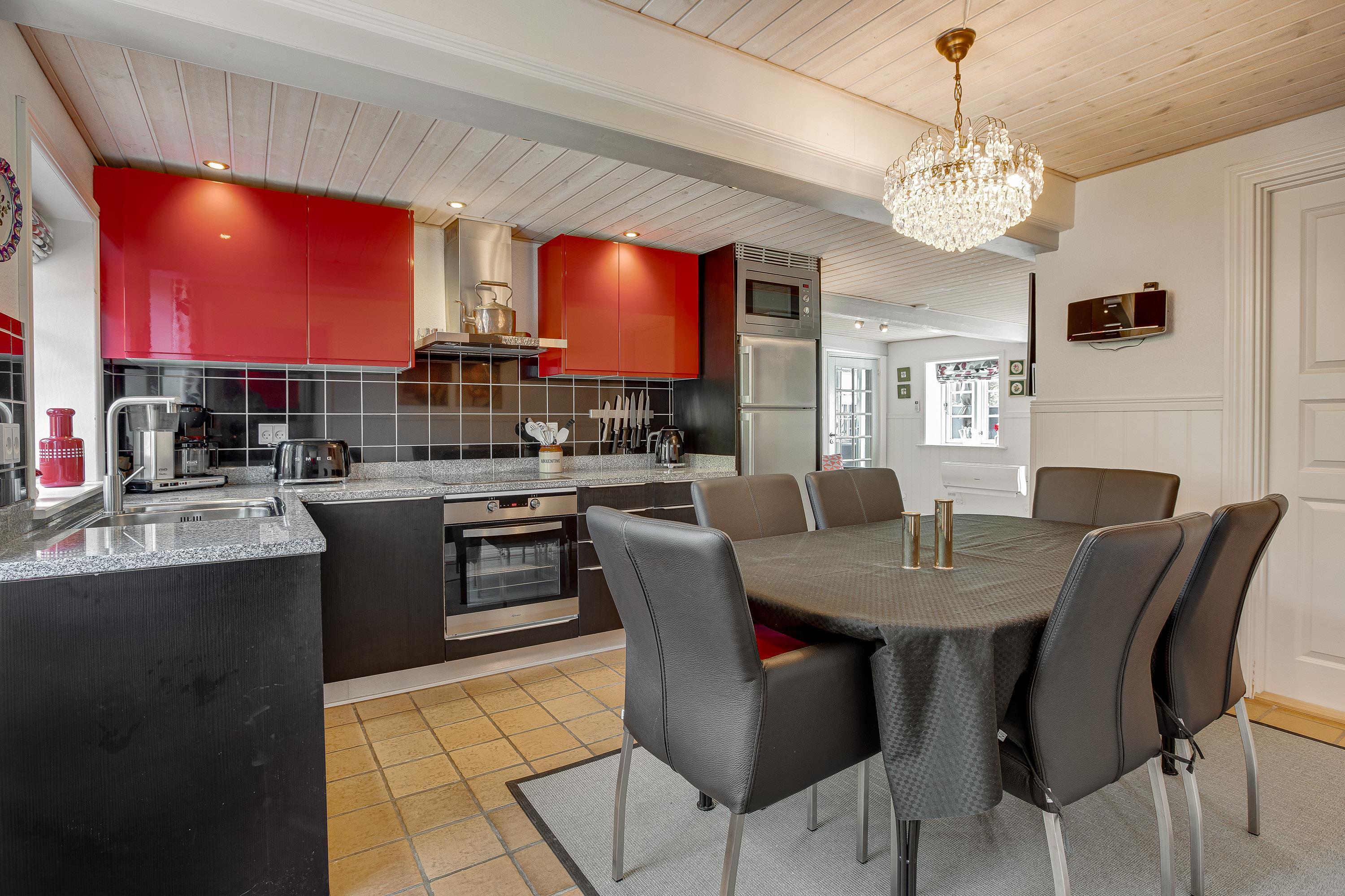 Den hyggelige ferielejlighed på Sønderbyvej 7D er renoveret i 2020 og fremstår særdeles indbydende med en gennemgående rød stil i hele lejligheden. Ferielejlighedens samlingspunkt er det fine alrum, som består af køkken, spiseplads og stue i åben forbindelse.