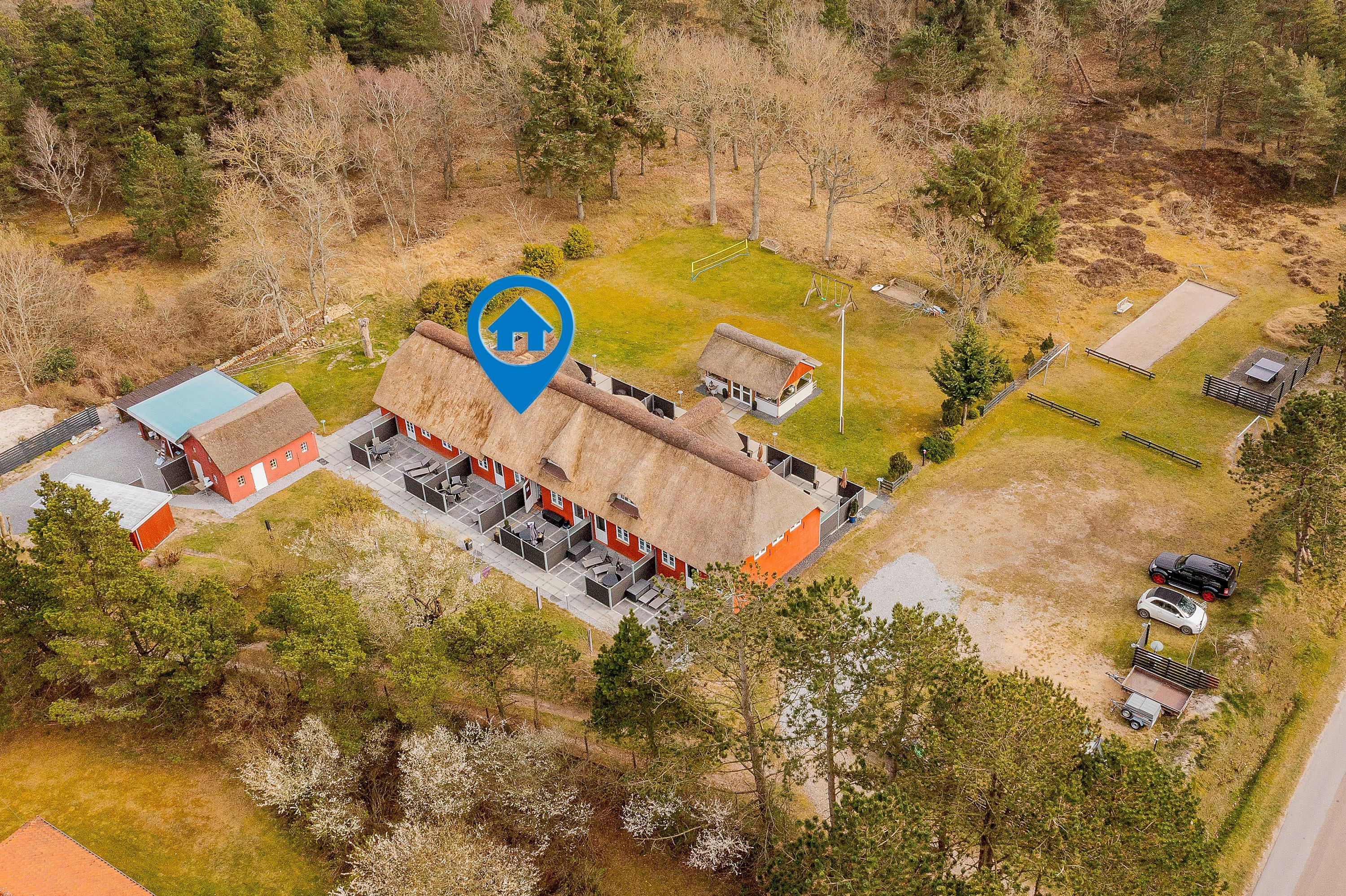 Ferielejligheden er en del af et lejlighedskompleks bestående af i alt 4 lejligheder, der deler skønne udendørs faciliteter. Den store naturgrund består af både græsplæne samt klitter, og her er rigelig plads til sjov og leg. Af udendørs aktiviteter ved lejligheden kan bl.a. nævnes bordtennis, petanquebane, tennis-/volleyball net samt sandkasse og gyngestativ.