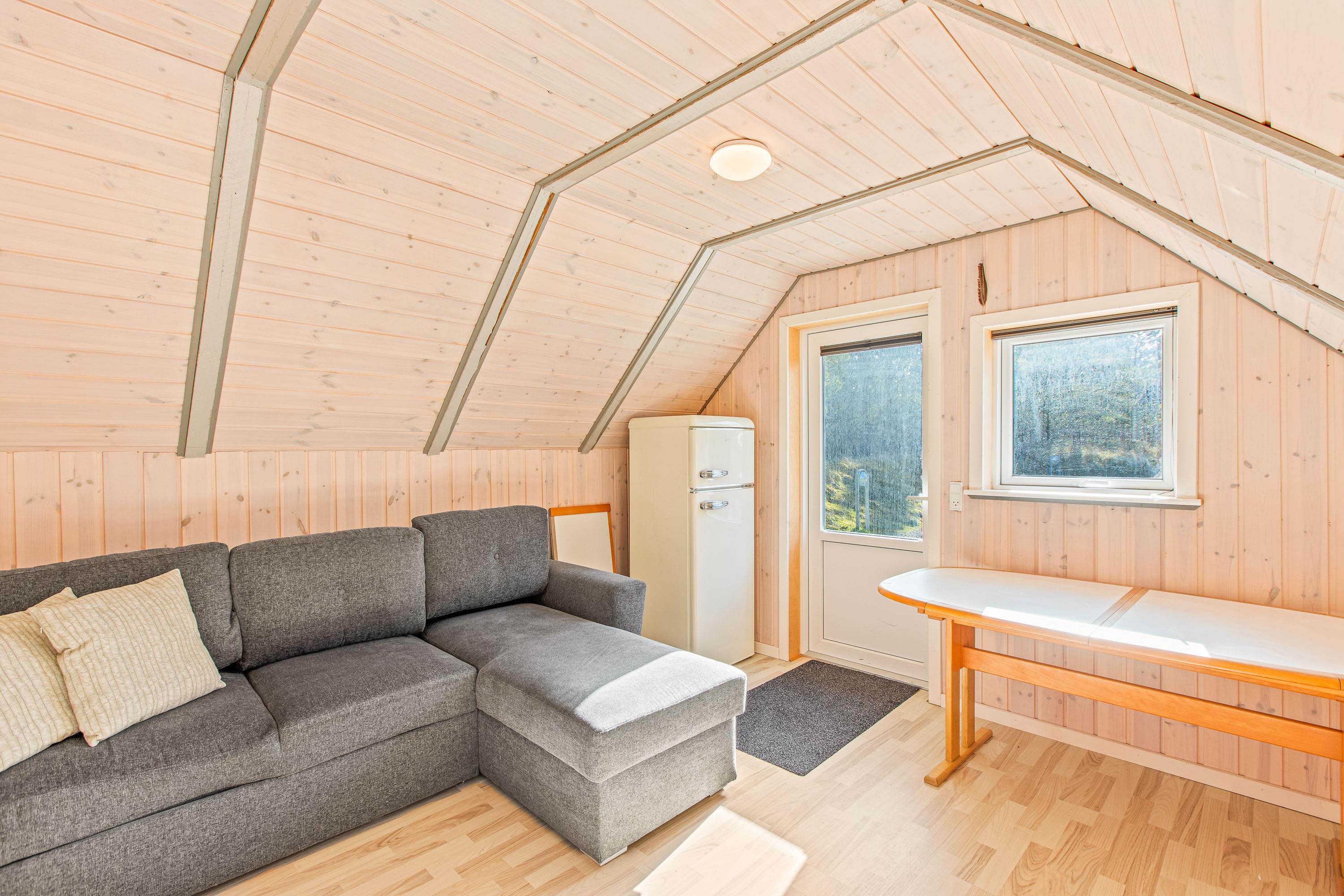 Udenfor indbyder den dejlige sydvendte terrasse med havemøbler til afslapning, imens de små kan hygge sig med gynge og sandkasse på den børnevenlige lynggrund.