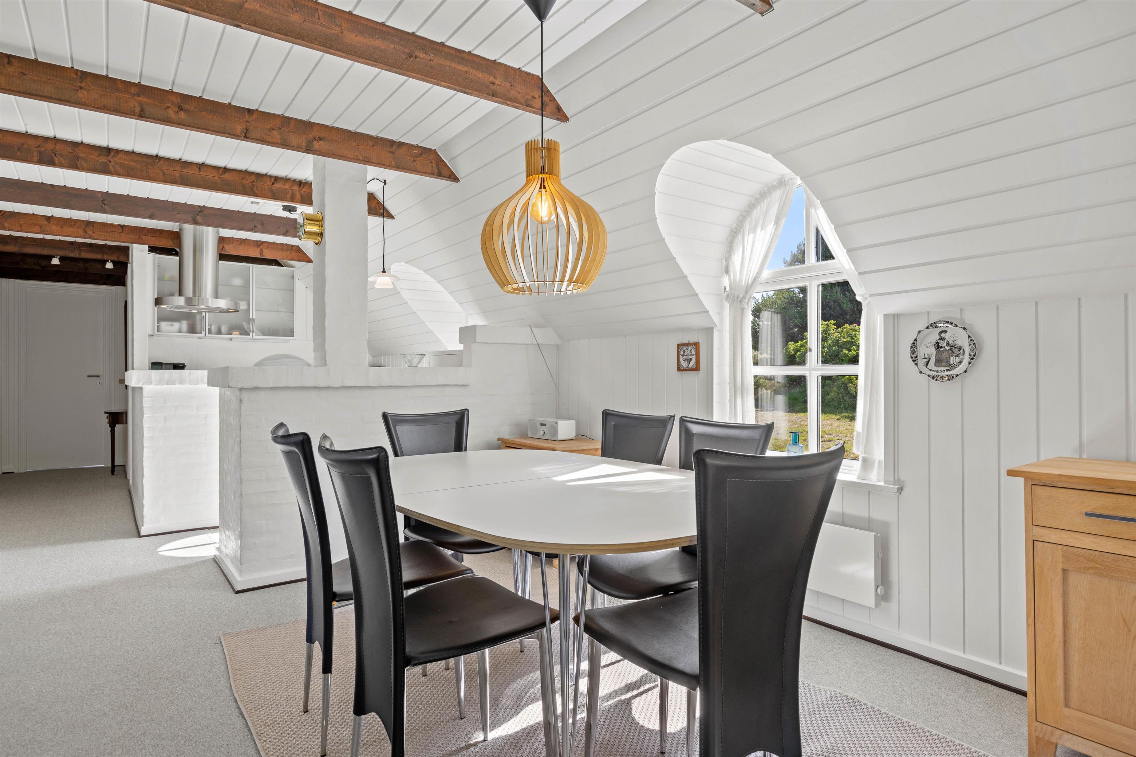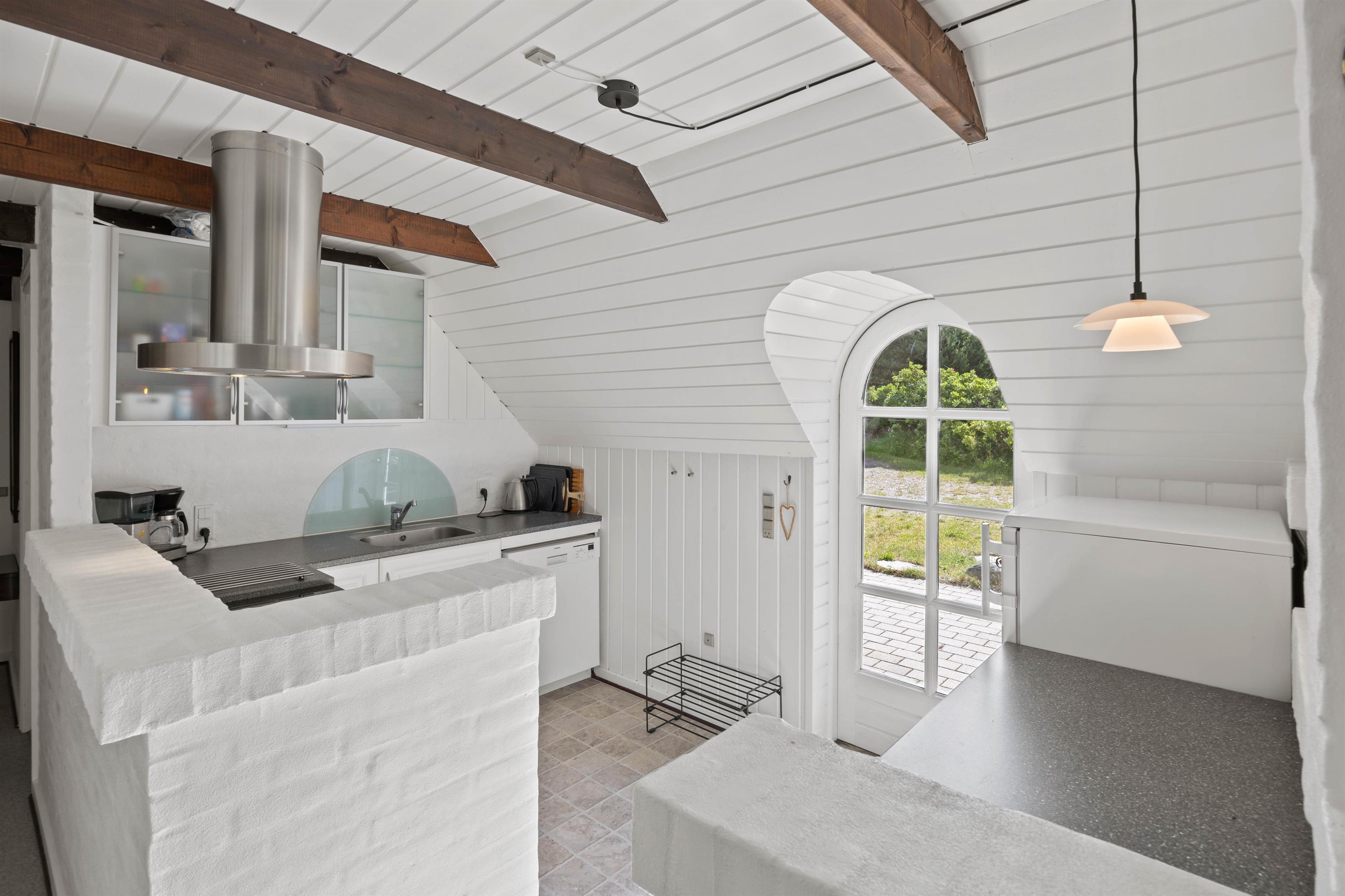 Praktisk er her installeret vaskemaskine, så I let kan vaske strandhåndklæderne under jeres ophold! I opholdsrummet hænger en energibesparende varmepumpe, og herfra er der ligeledes direkte udgang til sommerhusets terrasse.