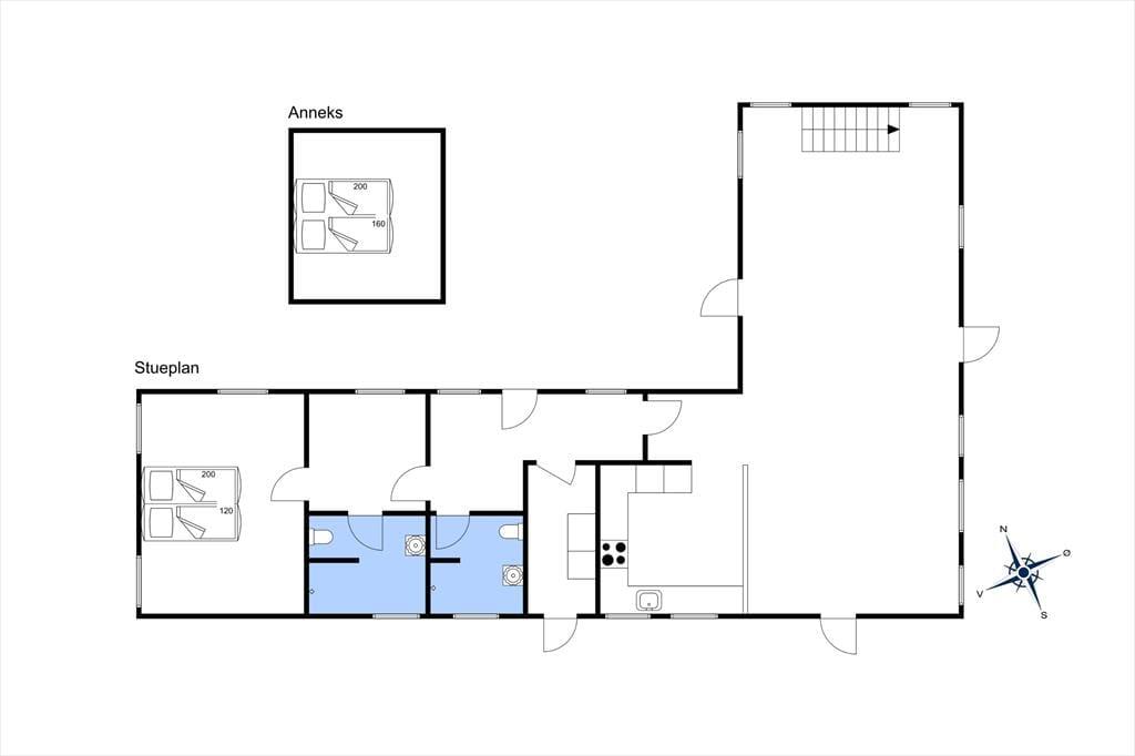 I stueplan finder I et lyst og roligt soveværelse med dobbeltseng – perfekt til dem, der vil falde i søvn med havets rytme tæt på. På første sal ligger et hyggeligt værelse med to enkeltsenge – ideelt til børn eller gæster, der vil vågne op med udsigt til himmel og hav.