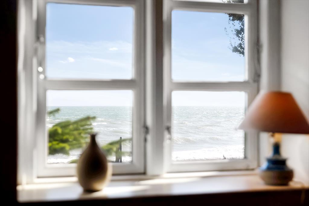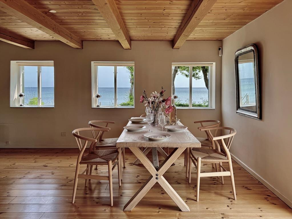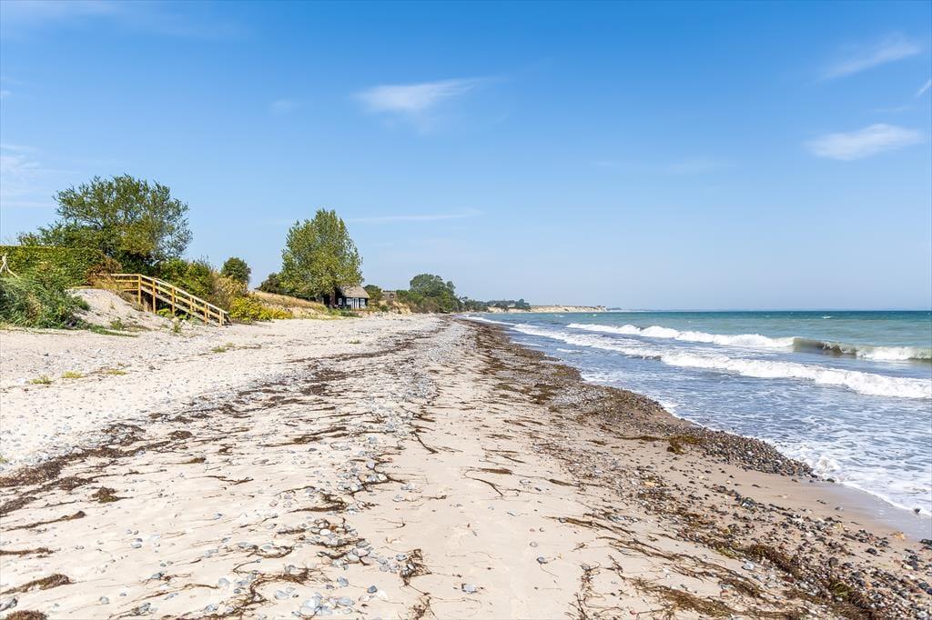 Forestil dig at sidde i stuen, mens bølgernes sagte brusen, fylder rummet som baggrundsmusik. Fra sofaen har du fri udsigt over Østersøen – lyden og lyset trækker havet helt ind i huset, og på kølige dage kan I tænde op indenfor, mens naturen folder sig ud foran jer.