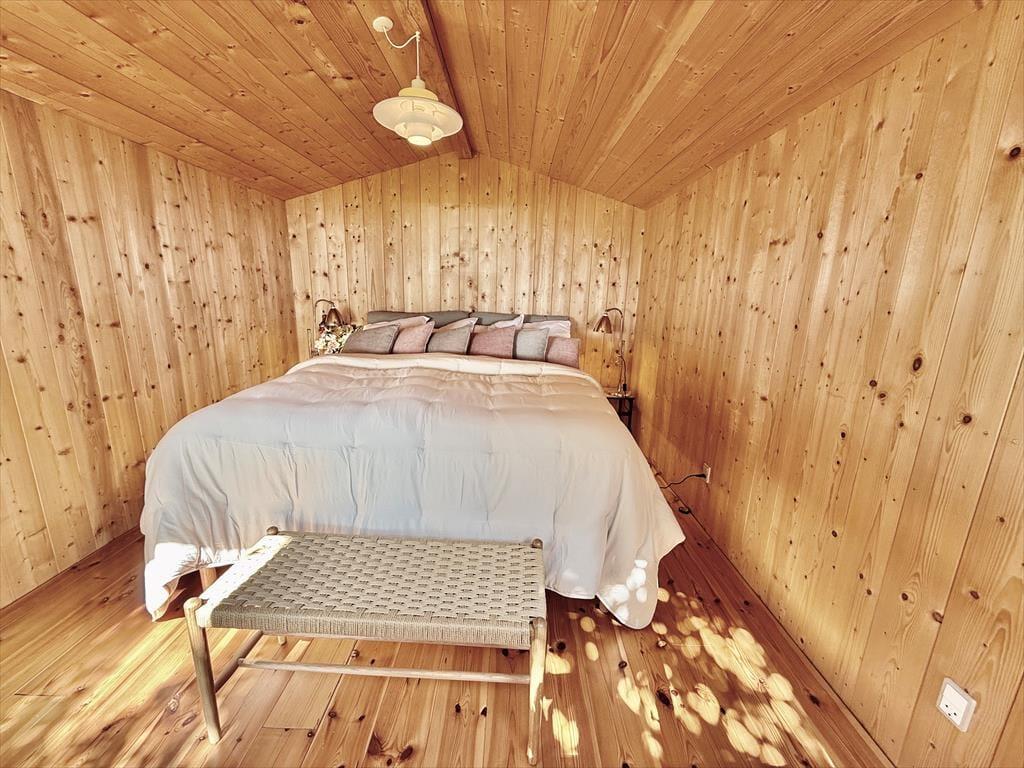 I haven ligger annekset, hvor en dobbeltseng giver mulighed for at trække sig tilbage til sin egen private lille oase – måske til teenagere eller venner, der ønsker fred og ro.
