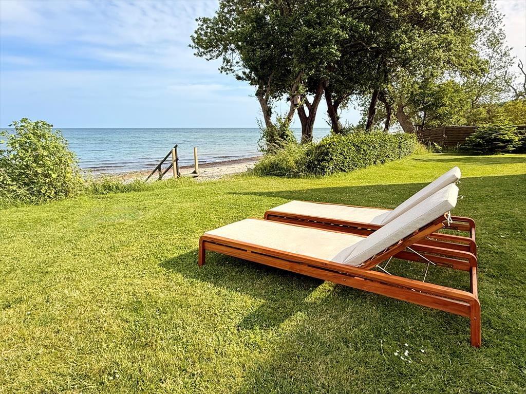 Huset ligger helt ned til vandet, omgivet af en smuk, ugeneret have med hele 4 terrasser, kroge og lækroge, hvor I kan trække jer tilbage med en bog eller nyde et glas vin med havet som baggrund.