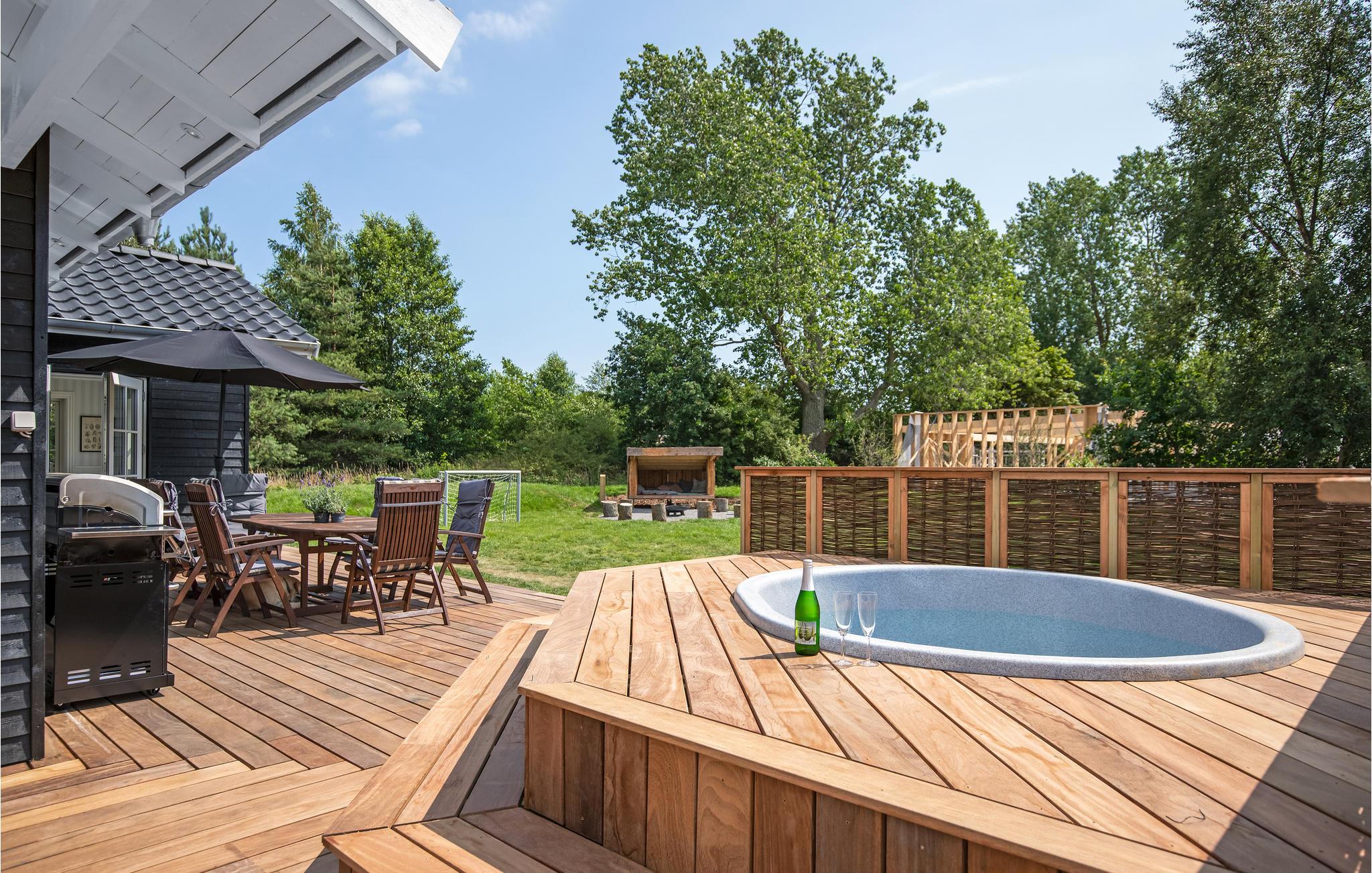 Sæt jer til rette i vildmarksbadet med plads til seks personer og dæk op til nogle skønne retter direkte fra grillen. Der er også shelter og bålplads på grunden, et udendørsspa, som op til ti personer kan sidde i, og to fodboldmål, der står klar til en kamp.