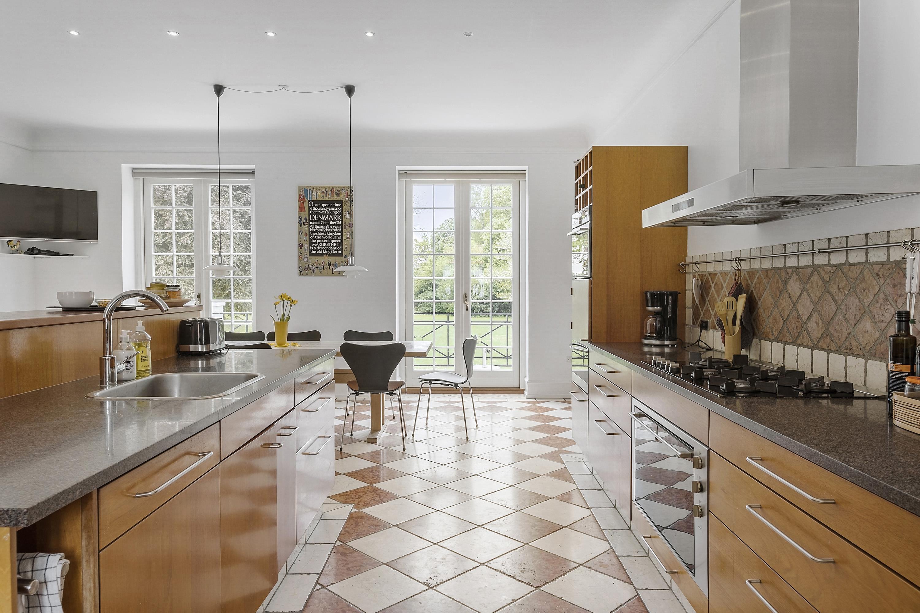 Udenfor venter naturoplevelser og ro. Tænk at kunne tage morgenkaffen på terrassen med udsigt til en ældre anlagt park – præget af smukke træer, rutinerede alléer og et rigt fugleliv med flere sjældne arter. Her er mulighed for at trække vejret dybt, lade hyggestunder (og evt. pejsen) tage over og lade landskabets stilhed virke. For livsnydere og naturelskere er nærheden til naturen en ekstra dimension.