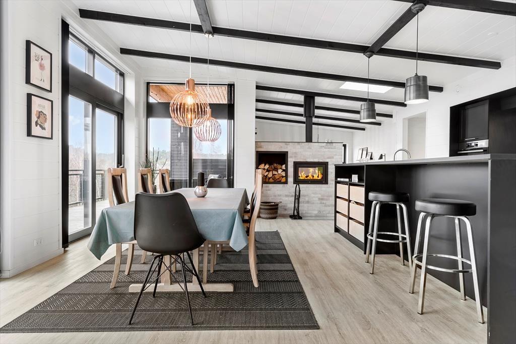 Dette indbydende og moderne feriehus er det perfekte udgangspunkt for en afslappende ferie tæt på naturen. Her er plads til hele familien med 8 sovepladser fordelt på hovedhusets to værelser med dobbeltsenge og et separat annex med yderligere to værelser. Husets samlingspunkt er stuen og køkkenalrummet, hvor en brændeovn med glas på to sider skaber hygge og varme på kølige aftener. Her kan du nyde udsigten til naturen fra de store vinduer, mens der tilberedes lækre måltider i det veludstyrede køkken med bl.a. induktionskogeplader og kaffemaskine. Annexet er ideelt til både afslapning og aktivitet med et aktivitetsrum med pool, dart og bordtennis samt et ekstra badeværelse.