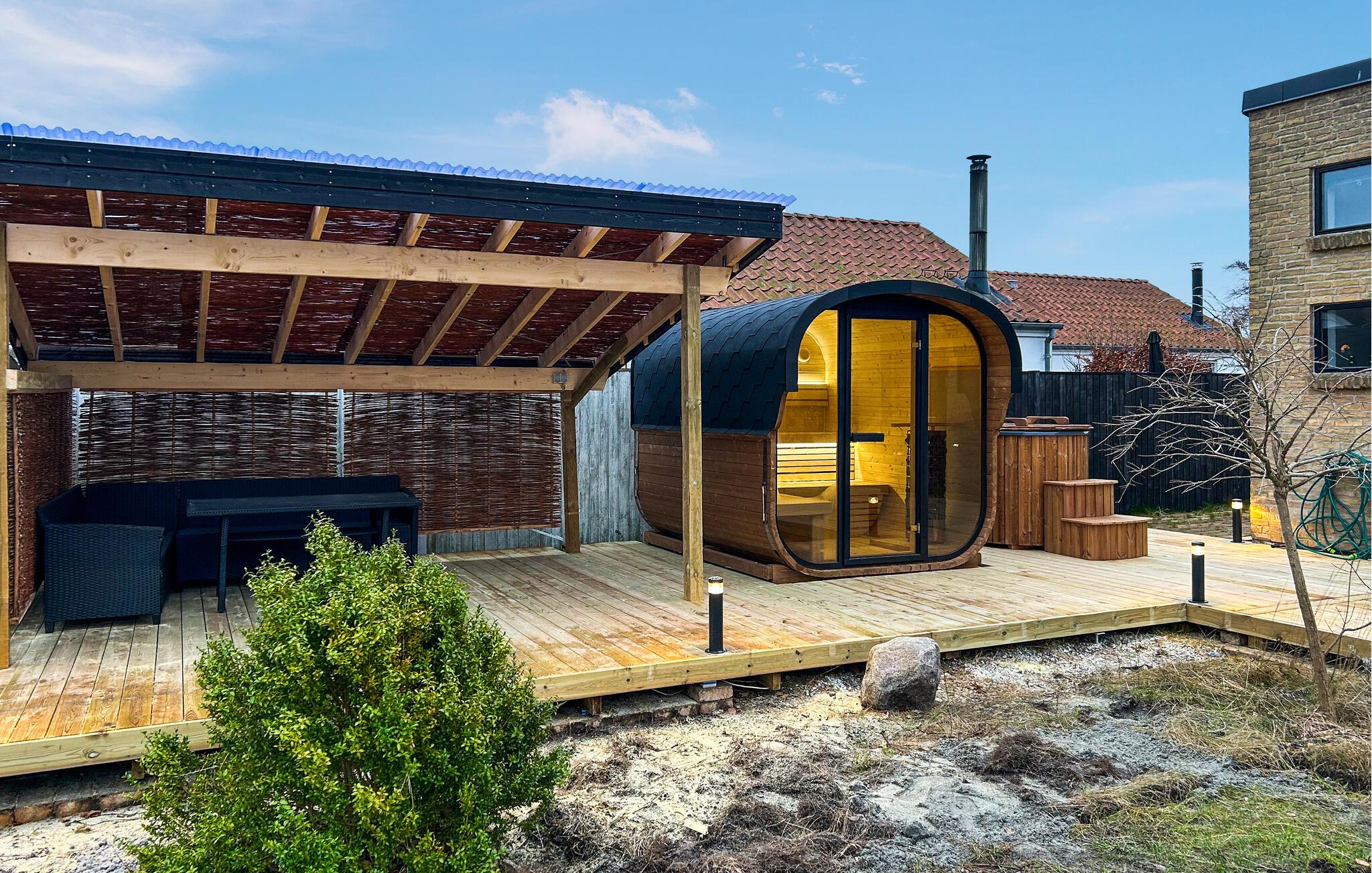 Feriehus med udendørs wellness og kort afstand til stranden ved Vibæk Strand i Ebeltoft.