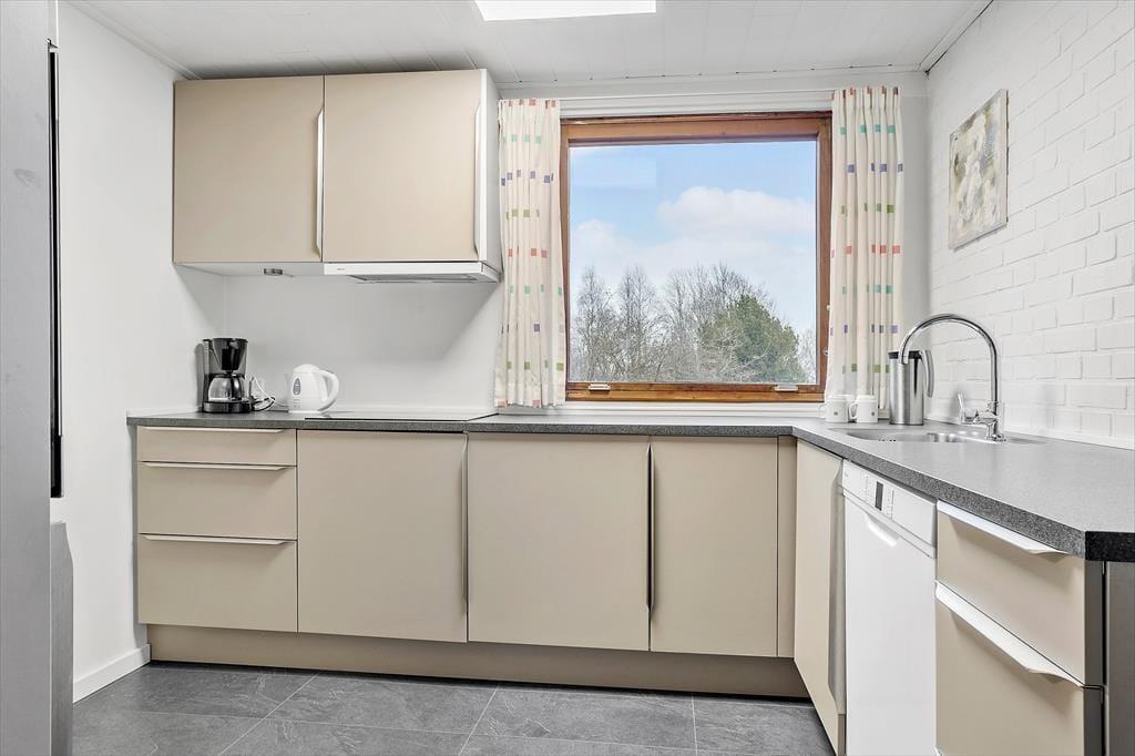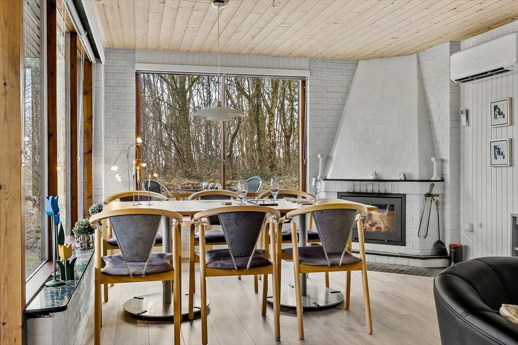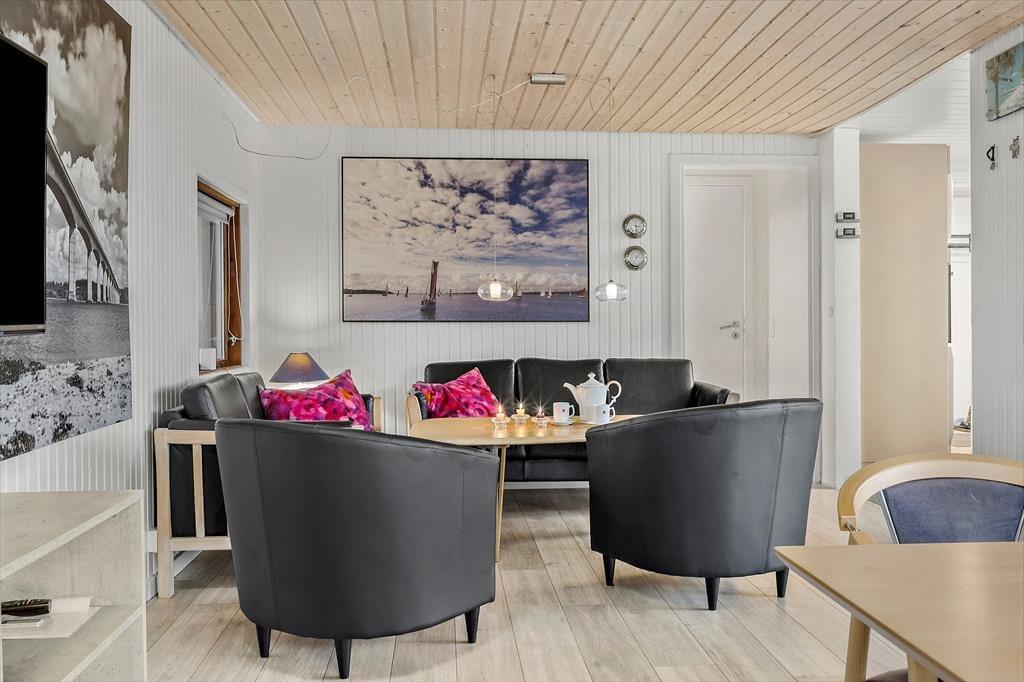 Inden døre bliver du mødt af en lys og indbydende indretning, der straks skaber en afslappende feriestemning. Stuen og køkkenet ligger i åben forbindelse, så I kan nyde nærværet, uanset om I spiller kort ved spisebordet eller tilbereder aftensmaden sammen. Den komfortable sofa indbyder til afslapning foran brændeovnen, mens du lader roen sænke sig efter en dag med oplevelser. Huset har tre soveværelser med gode senge, så både børn og voksne kan vågne veludhvilede og klar til en ny dag i sommerlandet. Badeværelset er lyst og funktionelt, og overalt i huset er der en dejlig fornemmelse af plads og hygge.