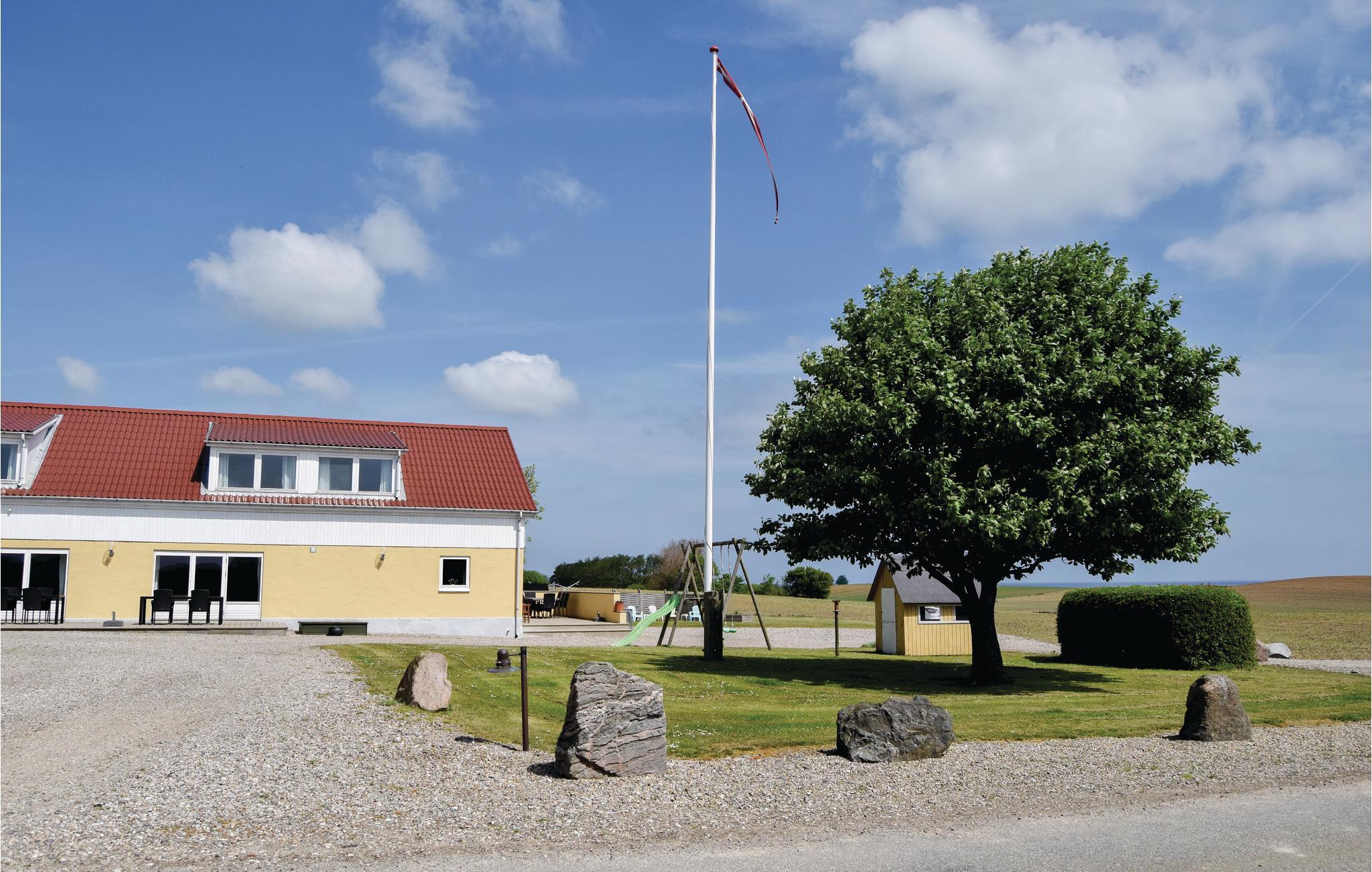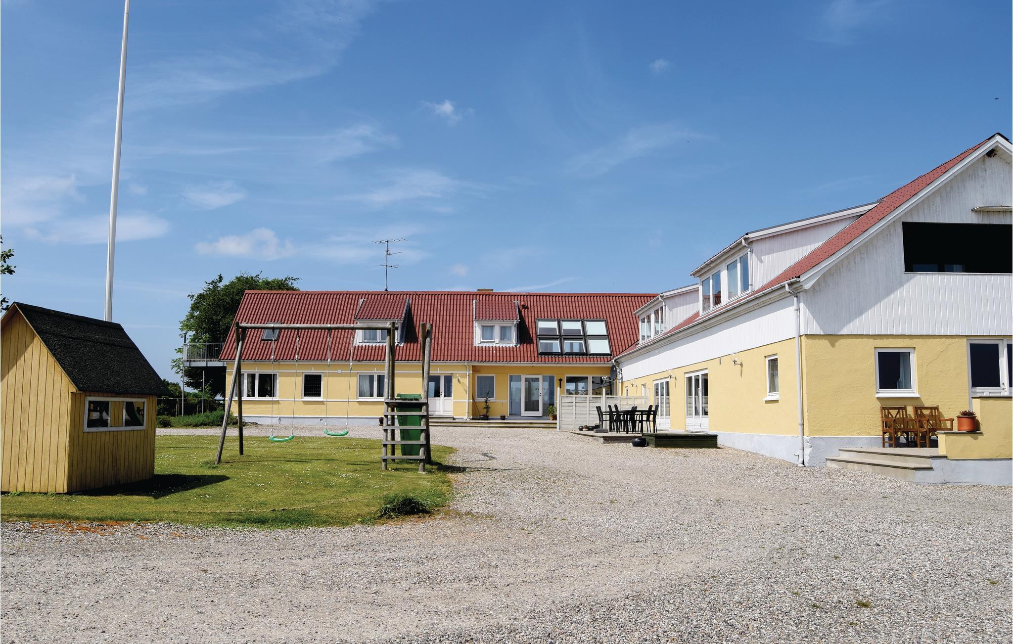 Velindrettet og rummelig ferielejlighed i to plan i en tidligere landejendom. Der er havudsigt over Langelandsbæltet med livlig skibstrafik, fra balkonen på 1. sal samt terrasserne. Ferielejligheden er beliggende på landet, på Sydlangeland ca. 5 km fra den lille by Lindelse. Dejligt stort køkken/alrum med spiseplads og klinkegulv, som indbyder til feriehygge. Stor opholdsstue med flere siddegrupper samt gulvtæppe. På 1. sal findes det ene af lejligheden to badeværelser samt et gæste WC, begge med flisegulv samt 4 soveværelser med trægulve med løse tæpper. Det østvendte soverum har udgang til en overdækket balkon, hvorfra der er en smuk havudsigt. På grunden er der flere aktiviteter til børnene samt en stor græsplæne til boldspil. Stueplan opvarmes med centralvarme og 1. sal med el-varme. Ejeren bor selv i den anden længe af ejendommen.