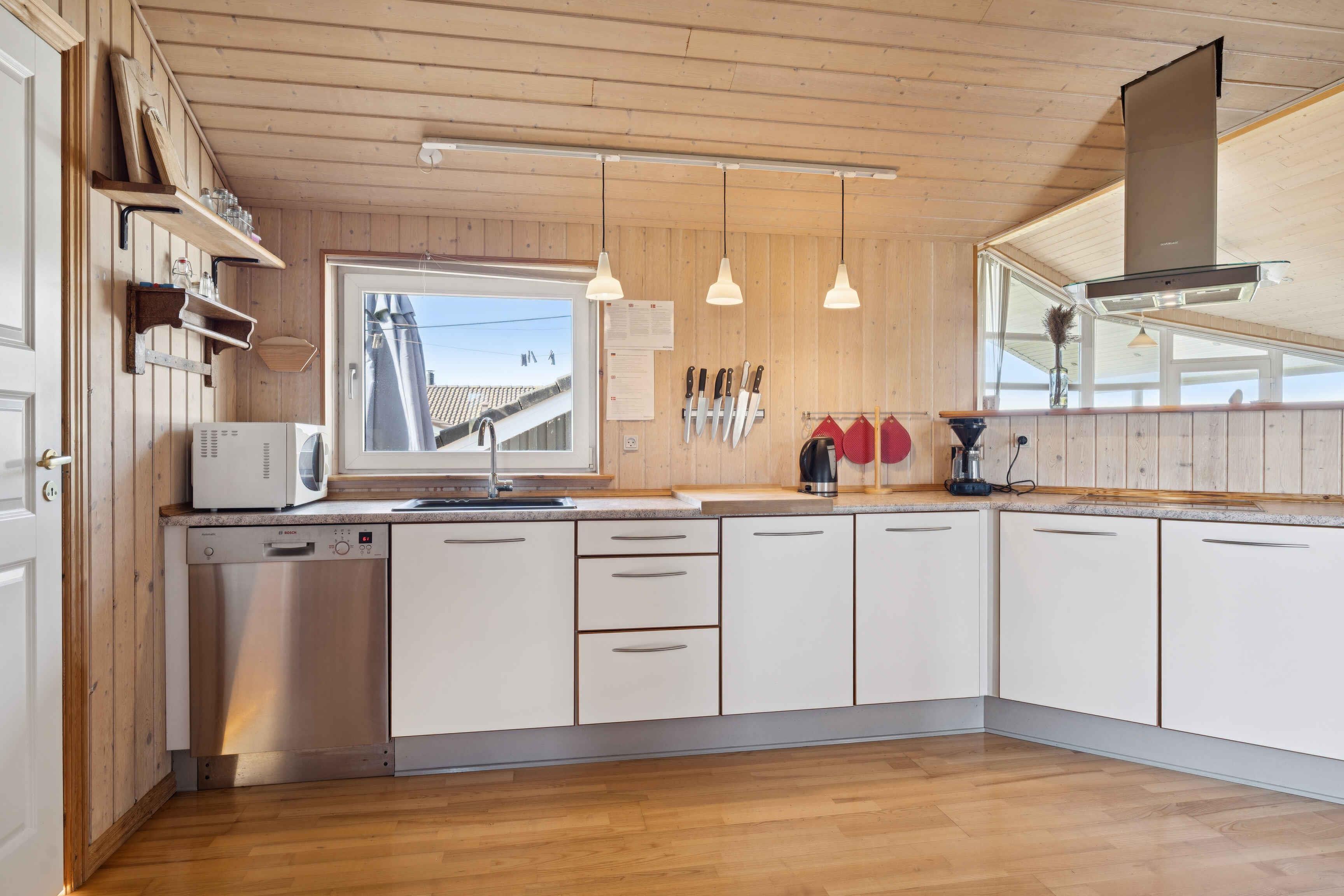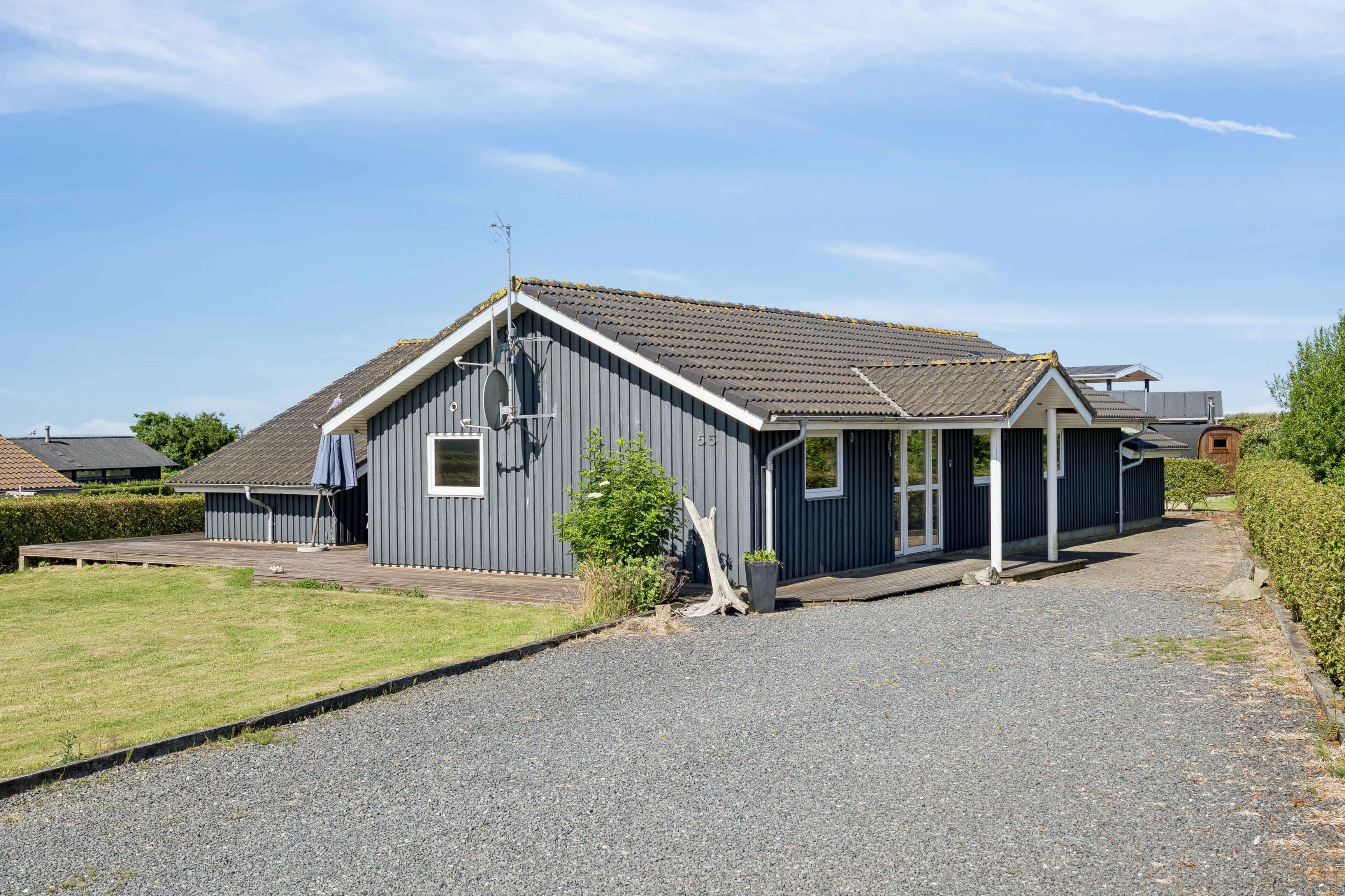 Dette rummelige feriehus på 134 m² rummer 4 soveværelser og i alt 8 sovepladser. Det er velegnet til både store og små selskaber, der ønsker en ferie med god plads til samvær og aktiviteter, uanset årstid. Kun 400 meter væk ligger Limfjorden, hvor Ejsingholm strand byder på lavt vand og rolige forhold for børn. Stranden er samtidig et velkendt spot for både kitesurfere og paraglidere, og her er plads til både afslapning og friluftsliv. I nærområdet finder man fine muligheder for lystfiskeri og en kort køretur bringer jer til Handbjerg Marina. Her kan man opleve havneliv, tage en gåtur langs kajen og nyde et måltid med udsigt over fjorden. For dem, der ønsker mere bølgebrus, er Vesterhavet inden for rækkevidde til en dagsudflugt. Ture i det åbne landskab til fods eller på cykel giver et godt indblik i den varierede natur i området. Som nabo ligger en campingplads, hvor husets gæster kan benytte de tilhørende aktiviteter uden ekstra omkostning. Det giver ekstra muligheder for leg og fælles oplevelser tæt på boligen. Indenfor byder huset på et åbent opholdsrum, hvor køkken, spiseplads og stue flyder sammen. De store vinduespartier lader lyset strømme ind og skaber kontakt til haven, hvor terrassen indbyder til udendørs måltider og hyggelige timer.