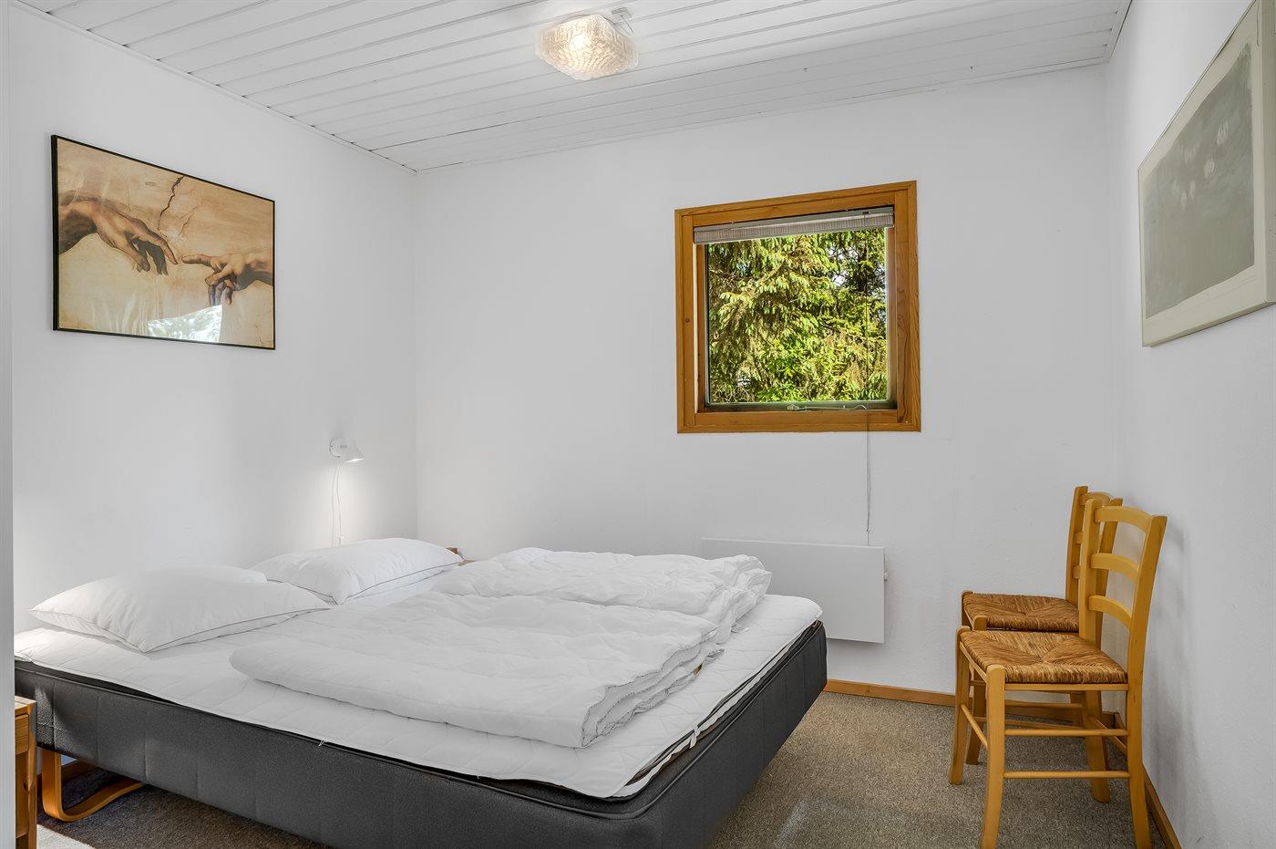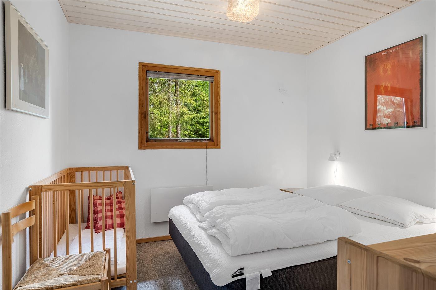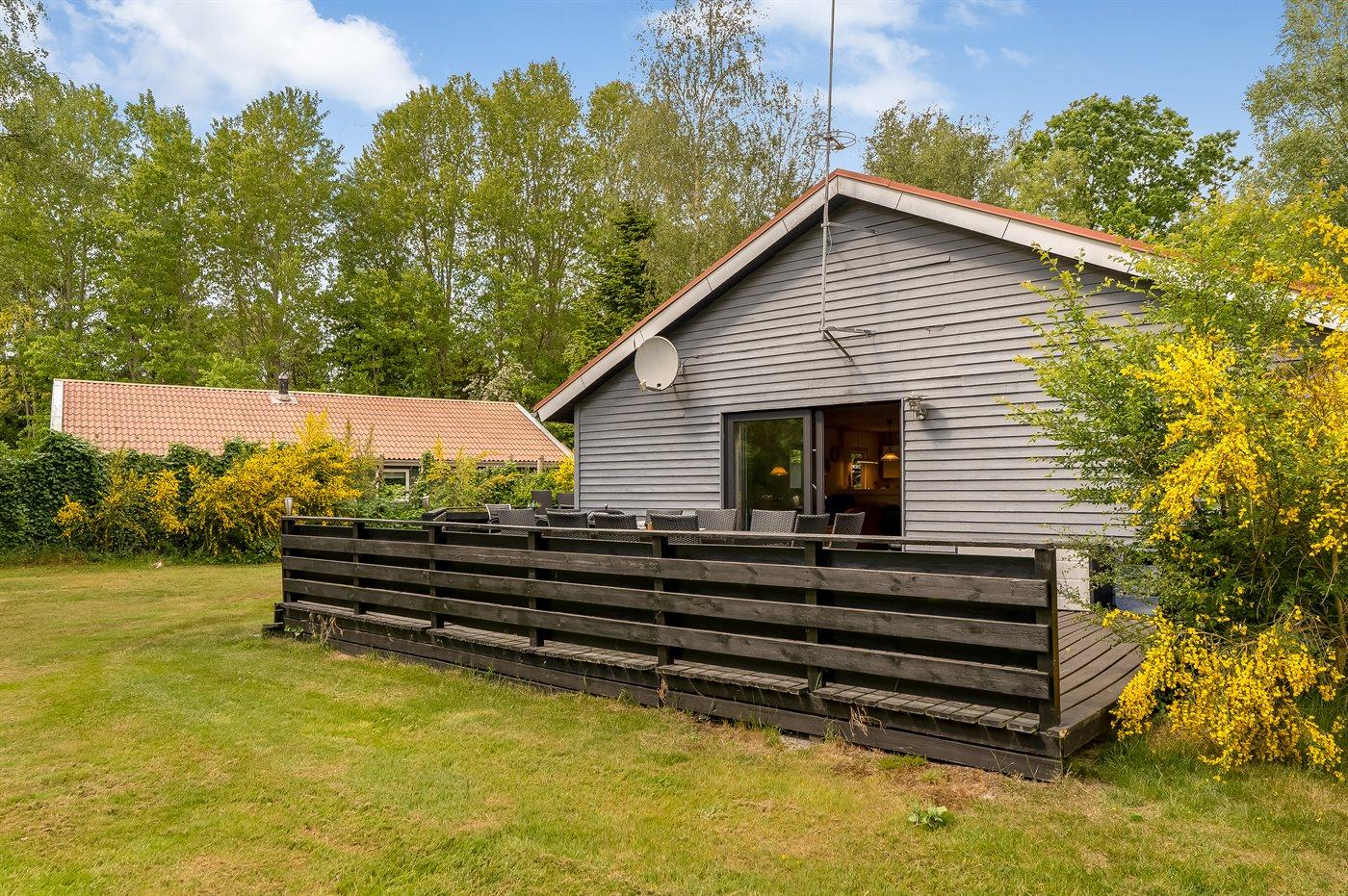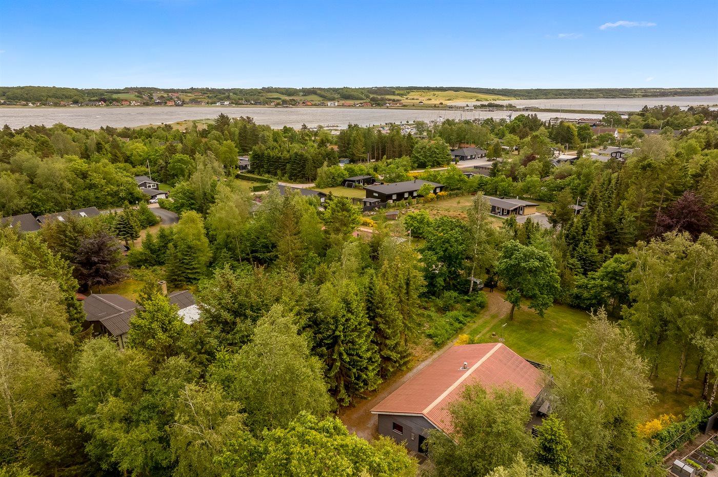 Kun 200 m fra vandet finder I dette hyggelige og børnevenlige sommerhus i træ med bl.a. spa og sauna, bygget i 1994 og moderniseret i 2010. Huset ligger på en skov-/plantagegrund med græs og høje træer samt sandkasse, gynger og legetårn med rutsjebane til børnene. Der findes en dejlig, afskærmet terrasse med havemøbler. Det pæne og lyse køkken er bl.a. udstyret med opvaskemaskine, mikrobølgeovn, fryser, varmluftovn og komfur med keramiske kogeplader. I den hyggeligt indrettede opholdsstue, med direkte adgang til terrassen, finder I brændeovn, TV med parabol (digital), DVD-afspiller og stereoanlæg med CD-afspiller. Husets sovepladser fordeler sig på 5 værelser; 2 med dobbeltseng, 1 med 2 enkeltsenge, 1 med køjeseng og 1 med køjeseng samt 1 enkeltseng. Der findes 2 badeværelser med gulvvarme og bruser. I det ene finder I desuden 2-spa og der er adgang til husets sauna. Aktivitetsrum med bordfodbold, bobspil, dart, mini-keglebillard og diverse legeredskaber til børn. Af yderligere udstyr kan gratis, trådløs WI-FI internetforbindelse, vaskemaskine, tørretumbler, ekstra køleskab og fryser, barneseng og høj barnestol nævnes. Trægulv i stuen, gulvtæpper på soveværelserne og klinker i badeværelser og køkken. Et godt sommerhus - velegnet til såvel 1 som 2 familier. Gode fiskemuligheder i nærheden. Virksund har lille havn, marina og kro.