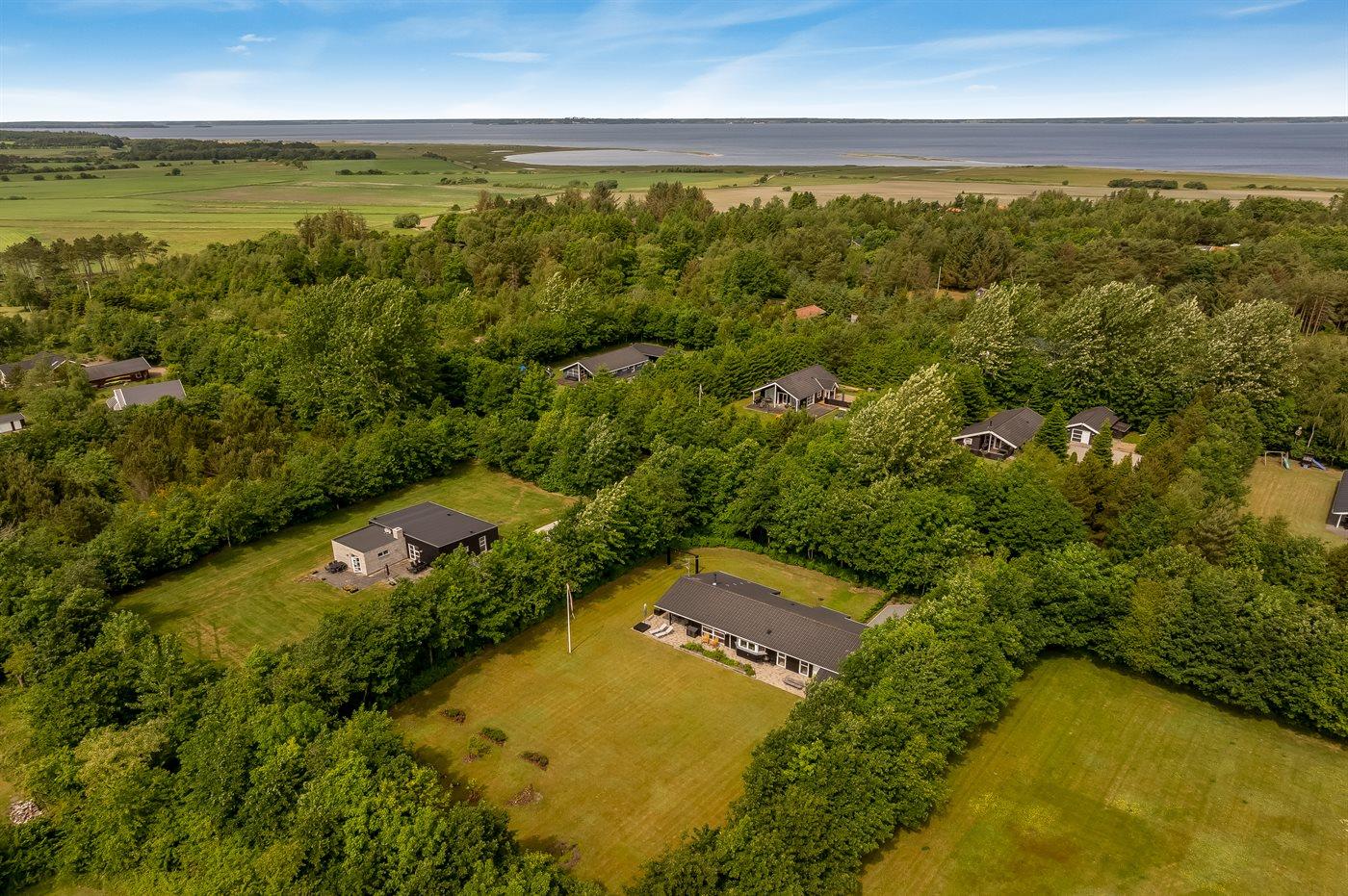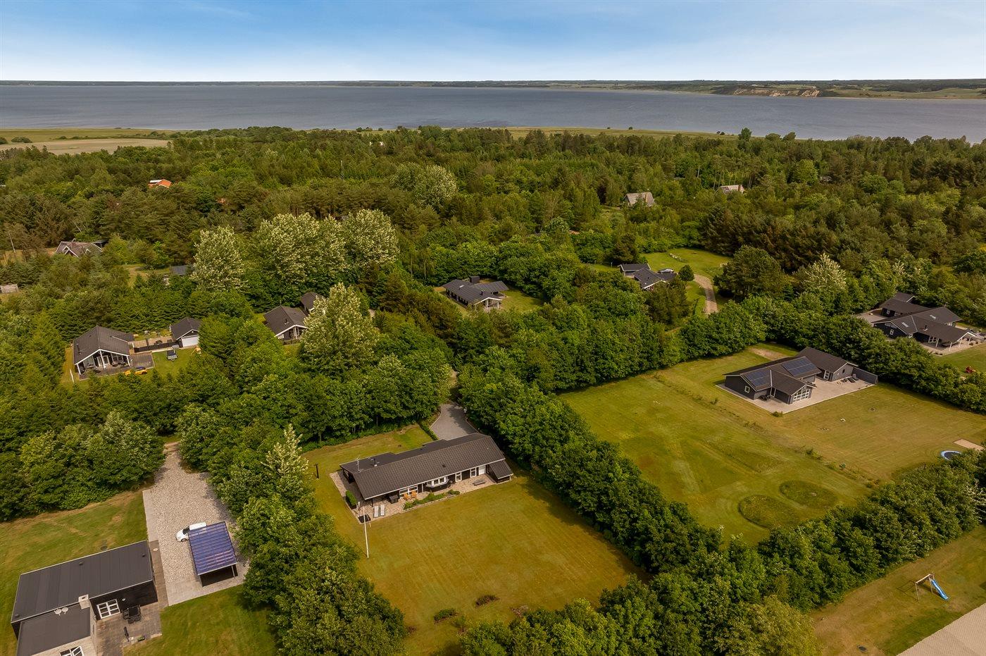 Ferieboligen er beliggende på en 2510 m² stor naturgrund. Grunden er indhegnet. Der er 500 m til fjorden. Nærmeste forretning er beliggende i en afstand af 1500 m. Til ferieboligen hører 80 m² terrasseareal. Desuden er der 20 m² overdækket terrasse. Der er redskabsrum. Gynge. Sandkasse. Der er carport til rådighed. Parkering ved ferieboligen.