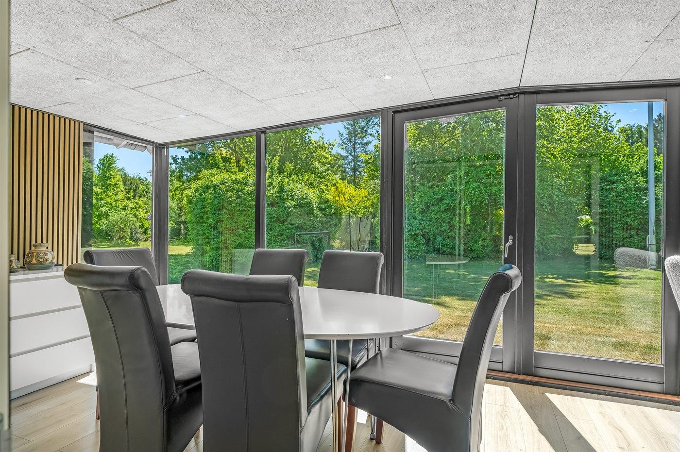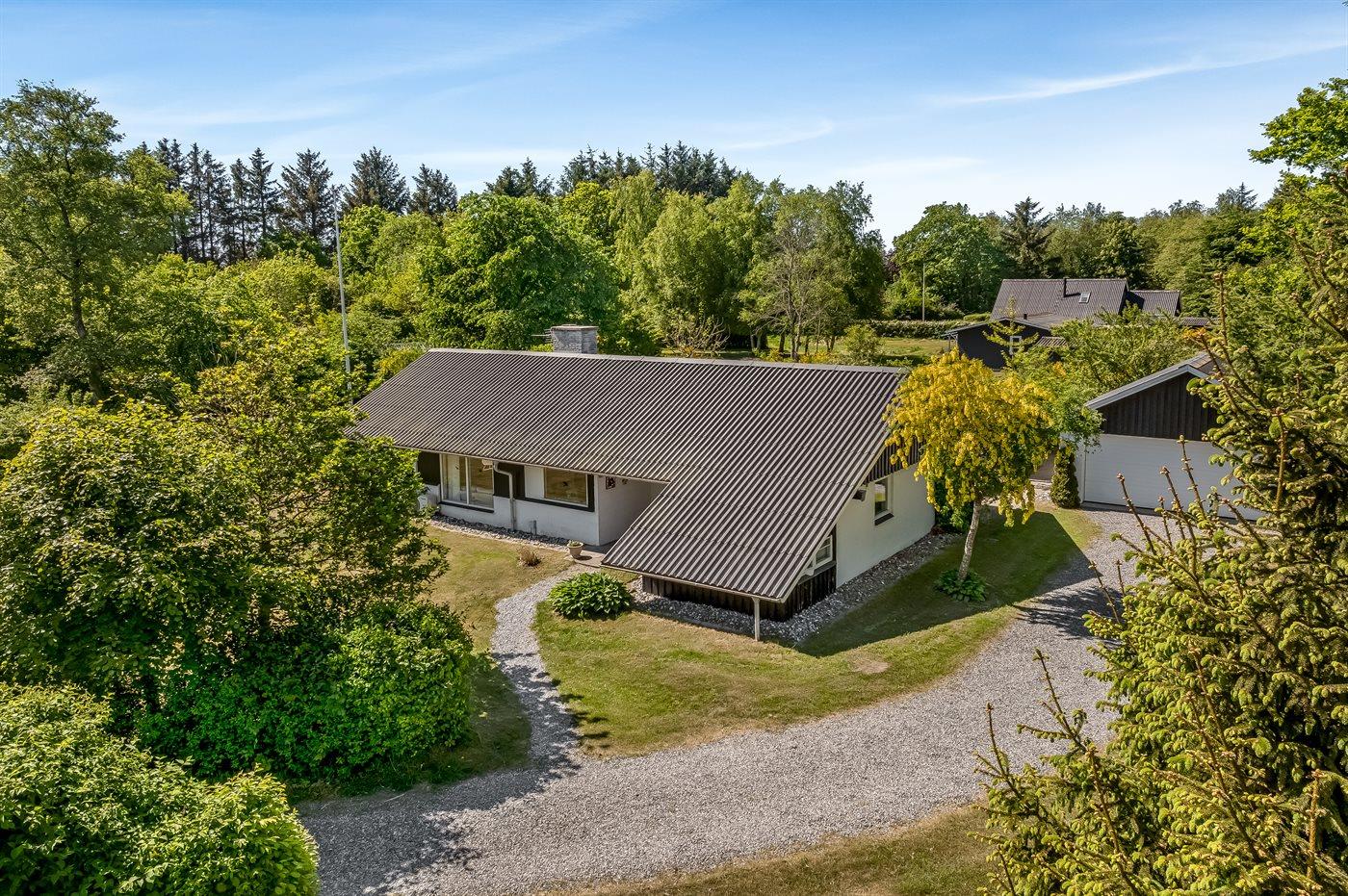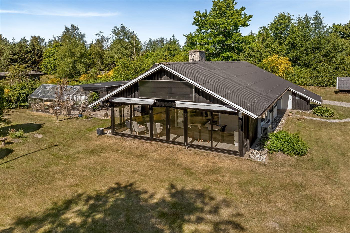 Til huset hører en stor grund, hvor du kan solbade og nyde de varmende stråler, spille bold eller lege tagfat med børnene. Der findes såvel åben som overdækket terrasse, hvor du kan tilbringe dejlige timer i det fri og skulle vejret vise sig fra sin til tider dårlige side, kan du sætte dig ind i den dejlige udestue.
