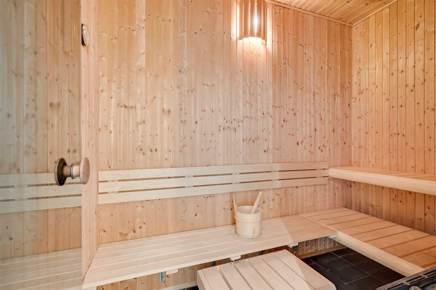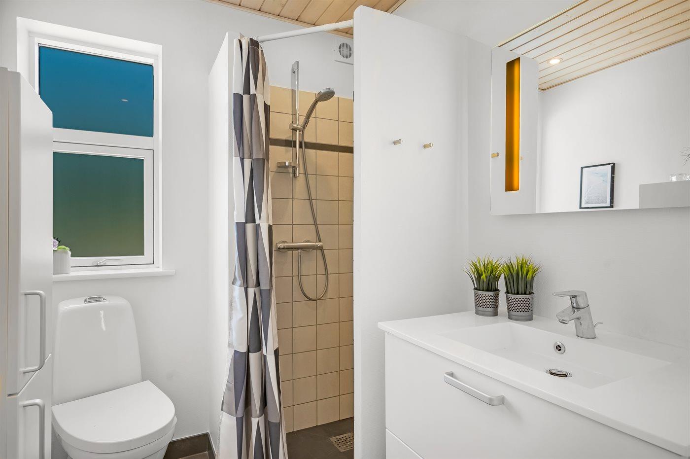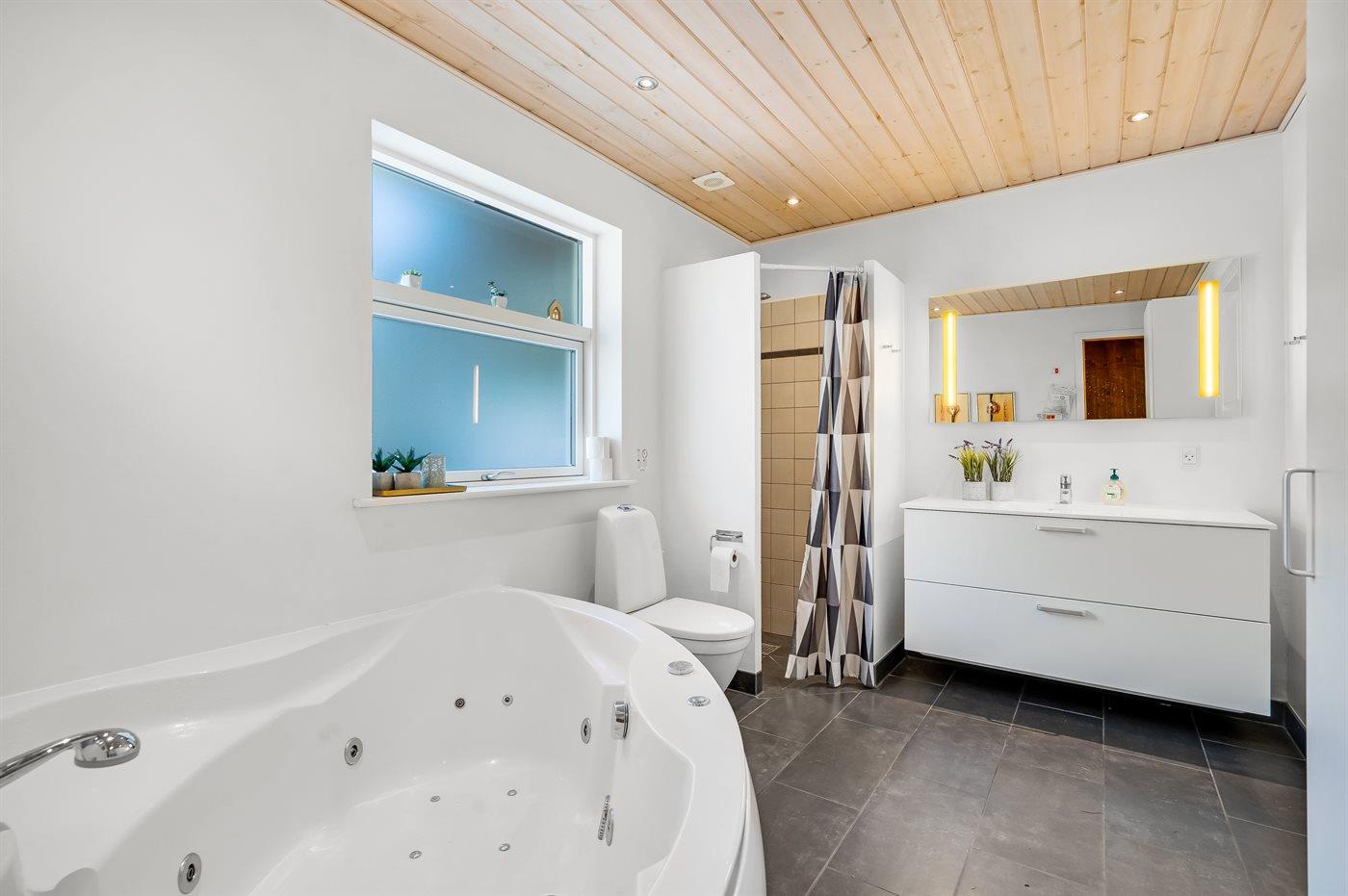 Der er 2 badeværelser med bruseniche og 2 toiletter. Der er gulvvarme på 2 badeværelser. I saunaen er der mulighed for afslapning.