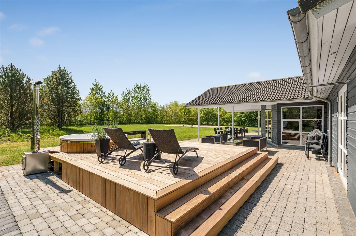 Når du træder ind i huset, skyller feriestemningen ind over dig, og med den store terrasse kan du nyde de dejlige solskinsdage. En anden mulighed er at bruge vildmarkskaret, hvor man kan sidde og lade alt stress forsvinde ud af kroppen.