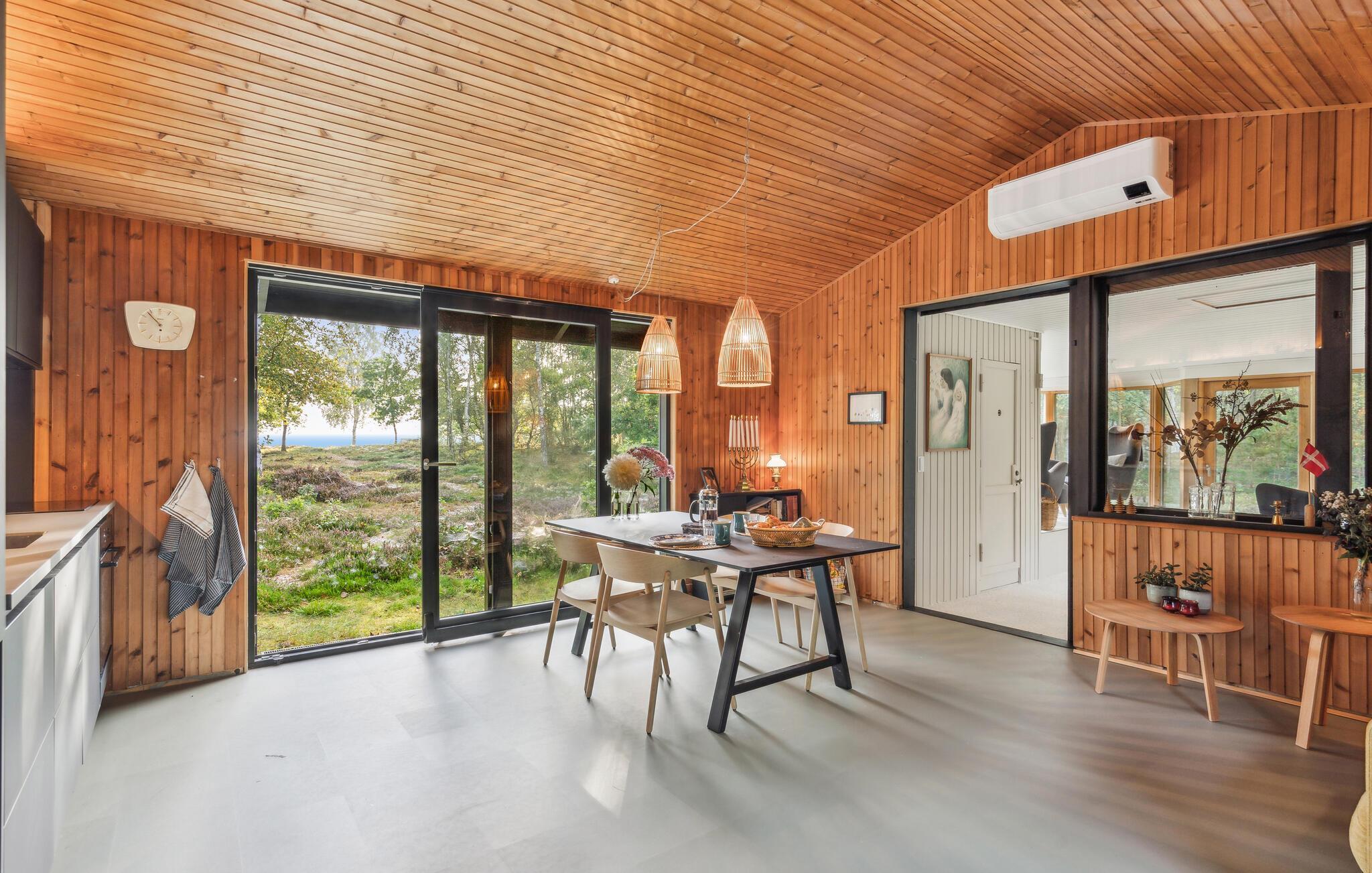 Hyggeligt feriehus i skovomgivelser med panoramaudsigt over Limfjorden og kort afstand til vandet.