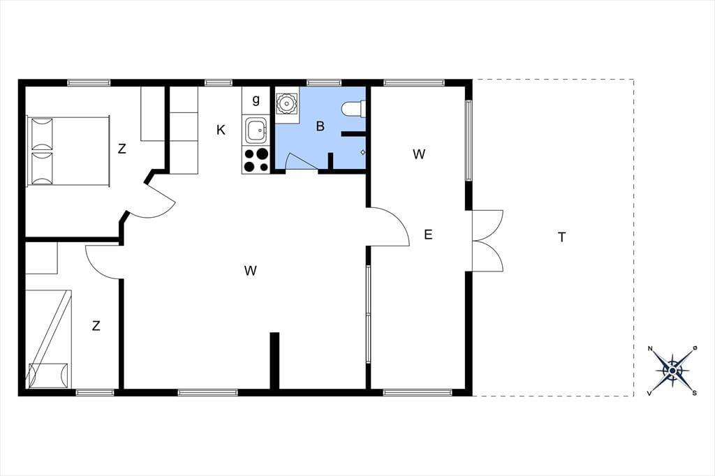 Når du træder indenfor i dette charmerende træhus, bliver du straks mødt af en lys og indbydende atmosfære, der emmer af feriestemning. Sommerhuset er ideelt indrettet til at skabe ro og afslapning med masser af naturligt lys, der strømmer ind gennem de store vinduespartier. Samlingspunktet er stuen, hvor komfortable møbler indbyder til hyggelige aftener foran brændeovnen. Det åbne køkken ligger i direkte forbindelse med spisepladsen, så samtalerne kan flyde frit, mens der laves mad. Til de yngste – eller dem, der bare trænger til lidt privatliv – er det lille, hyggelige anneks med to sovepladser en skøn mulighed.