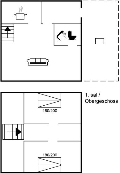 Der er i alt 2 soveværelser. Sovepladserne fordeler sig på: 4 sovepladser i elevationssenge. Derudover er der 1 stk. barneseng.