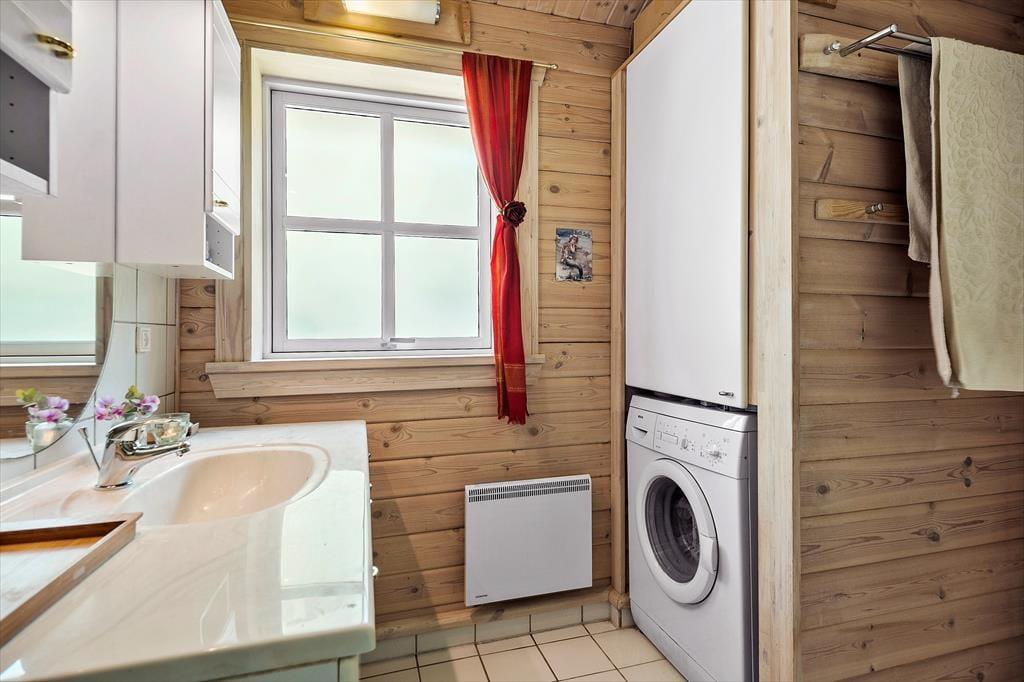 Velkommen indenfor: Indendørs finder du et lyst og åbent køkken, der i kombination med den rummelige spise- og opholdsstue er perfekt til fælles hygge. Huset rummer to komfortable soveværelser samt et dejligt badeværelse med brus og vaskemaskine. Sommerhusets indretning er meget indbydende med en hyggelig indretning, hvilket skaber en dejlig rolig og afslappende atmosfære. Tænd gerne op i brændeovnen på de køligere dage, og lad feriehyggen brede sig.