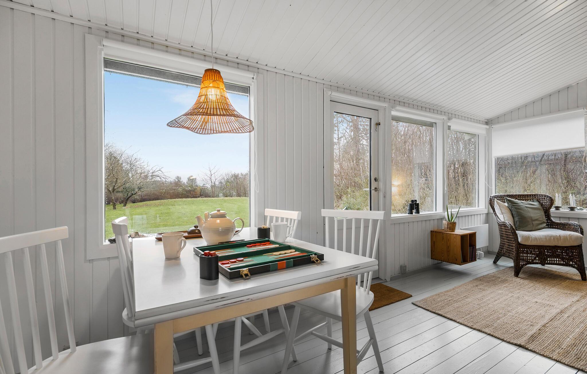 Kun få skridt fra vandet ligger dette smagfulde sommerhus, hvor der hersker en skøn ro. Tilbered dagens måltider i det moderne og veludstyrede køkken og dæk op i den indbydende stue. Om aftenen skaber brændeovnen en ekstra hyggelig atmosfære, mens I streamer en god serie eller hygger med brætspil.