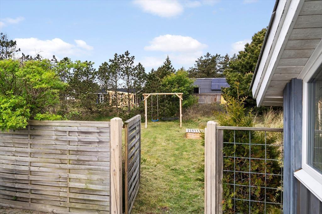 Livet i sommerhus handler i høj grad om at være ude – og det kommer du til at nyde i fulde drag her. Sommerhuset ligger på en dejlig grund, hvor der er plads til leg, afslapning og hyggelige stunder med familien. Du kan nyde solen på terrassen, lade børnene løbe frit omkring, eller læne dig tilbage med en god bog og bare lytte til fuglene, der synger i baggrunden. Hunden er også velkommen, og det er let at tage på små gåture i området, hvor naturens skønhed folder sig ud lige uden for døren. Med både hav, klitlandskab og Nationalpark Thy i baghaven har du altid noget at kigge på og glæde dig over. Uanset om du er til stille stunder i solen eller en aktiv dag i det fri, er dette sommerhus en tryg og fredelig base, hvor du virkelig kan nyde livet udenfor.