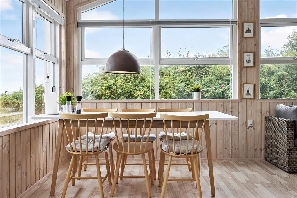Udelivet er i fokus på Mose Bøllevej 13 – og det gælder ikke kun for dig, men også for familiens firbenede medlemmer. Den lukkede terrasse er både rummelig og meget hundevenlig, så både børn og hunde kan færdes trygt og frit. Terrassen er et oplagt sted at starte dagen med morgenmad i solskinnet eller afslutte den med et glas vin, mens aftenen falder på og stjernerne titter frem over Nationalpark Thy. Huset ligger i et fredeligt kvarter, hvor stilheden kun brydes af vindens sus i træerne og fuglenes kvidren. Uanset om du er til aktiv leg, afslappende solbadning eller bare ønsker at sidde i ro og nyde naturens lyde, så finder du et hjørne på terrassen eller grunden, hvor du kan lade tankerne flyve. Her er det let at mærke, hvordan skuldrene sænker sig, og nærværet får plads.