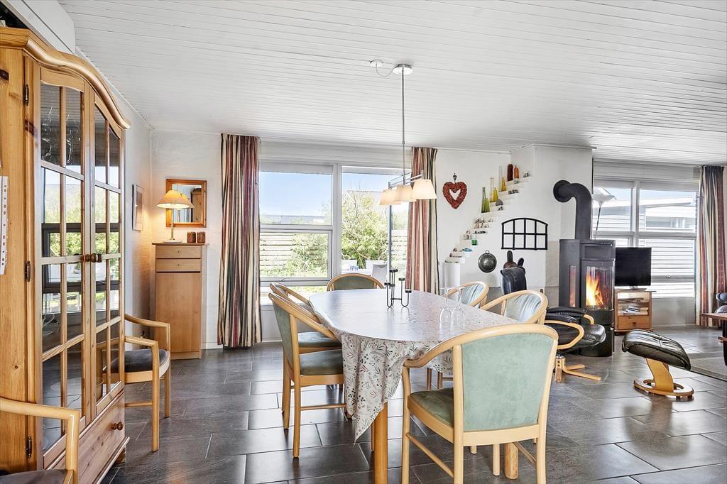 Når du træder ind i dette sommerhus, mærker du straks den hyggelige atmosfære. Huset er indrettet med varme farver og komfortable møbler, der indbyder til afslapning og samvær. Den hyggelige stue bliver hurtigt ferieoplevelsens samlingspunkt – særligt på de kølige dage, hvor brændeovnen knitrer, og varmen breder sig i hele rummet. Her kan du nyde en god bog, en kop varm kakao eller en brætspilsaften med familien. Sommerhuset har plads til op til otte personer, hvilket gør det ideelt til den store familie, to vennepar eller en flok venner, der ønsker at nyde en ferie sammen.