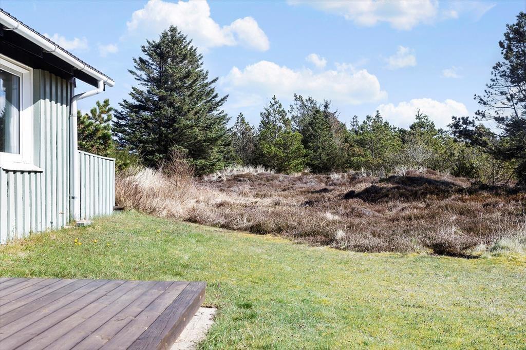 Omkring huset breder naturen sig ud i al sin enkelhed. Grunden er grøn og indbydende, og der er god plads til at nyde livet i det fri – hvad enten du vil læse en bog i solen, spille kroket med børnene eller blot lade blikket hvile på de grønne omgivelser. Den østvendte terrasse er ideel til morgenkaffen, hvor du kan mærke solen varme, mens fuglene synger og dagen stille begynder. Om eftermiddagen lokker den åbne sydvendte terrasse, hvor du kan slænge dig i havemøblerne og nyde et glas vin i solen. Det omkringliggende hede- og klitlandskab skaber en autentisk kulisse for udelivet – her er du omgivet af natur og stilhed, kun brudt af vinden i træerne og Vesterhavets brusen i det fjerne.
