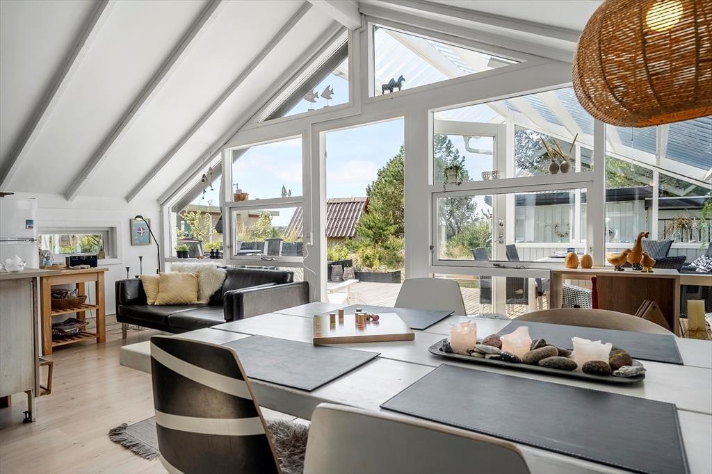 Som du træder ind i sommerhuset på Tranebærvej 10, bliver du mødt af en smagfuld indretning, hvor hver detalje er nøje udvalgt for at skabe en varm og indbydende atmosfære. Brændeovnen er omdrejningspunktet i stuen, hvor du kan nyde en afslappende aften foran den knitrende ild – perfekt til hyggestunder med familie og venner. Husets indretning er moderne, men samtidig har det en rustik charme, der får dig til at føle dig hjemme fra første øjeblik. Huset har alle de nødvendige faciliteter, og den åbne planløsning gør det muligt for alle at være sammen, mens man stadig har plads til at slappe af og finde ro.