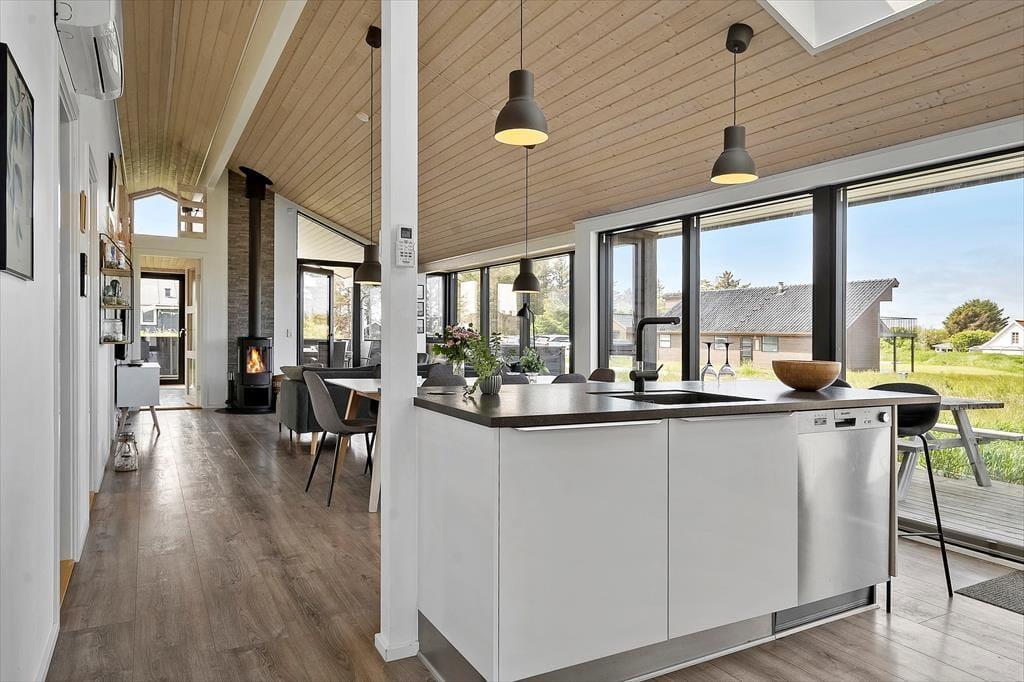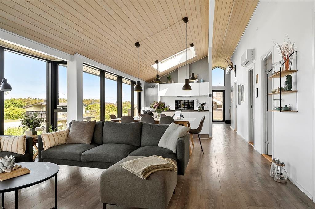 Træd ind i dette nybyggede sommerhus, hvor moderne elegance og traditionel hygge går hånd i hånd. Her bliver du mødt af en indbydende stue, hvor den smagfulde indretning og de nøje udvalgte materialer skaber en atmosfære, der indbyder til både afslapning og samvær. Den centrale brændeovn, der med sit blide knitrende bål skaber varme og stemning, er et klart højdepunkt, og sommarhusets åbne planløsning sikrer, at alle føler sig hjemme med det samme. Huset er designet med omtanke for detaljerne, så der er plads til både ro og festlige stunder. Uanset om du ønsker at nyde en stille aften med en god bog eller samle familien til hyggelige spilaftener, er der tænkt på alle dine behov i dette moderne hjem.