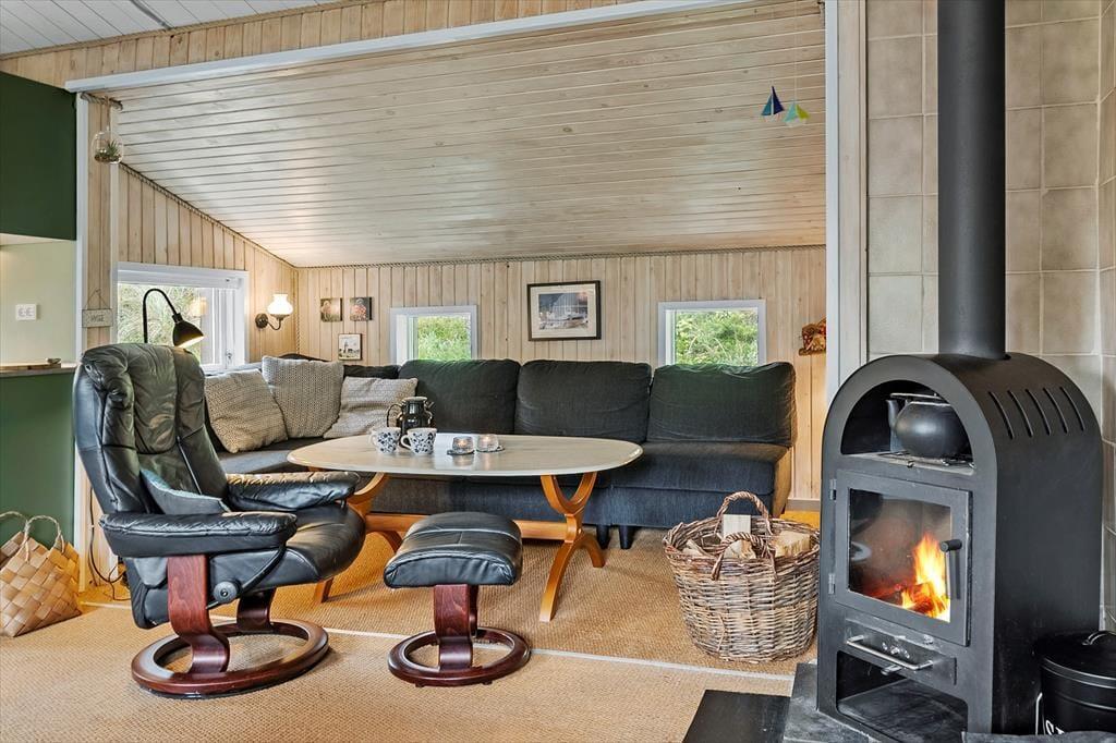 Træd indenfor i sommerhuset, hvor en varm og indbydende atmosfære straks omfavner dig. Her møder du en hyggelig stue med en ægte brændeovn, der om aftenen spreder et blidt og beroligende skær, mens flammernes dans skaber en følelse af tryghed og nærvær. De nøje udvalgte møbler og den smukke indretning afspejler en passion for både komfort og æstetik, der indbyder til lange, afslappende stunder med en god bog eller hyggesnak med dem, du holder af. Du mærker straks, at her er der lagt vægt på detaljen og den personlige stemning, som får huset til at føles som et hjem væk fra hjemmet – et sted, hvor alle sanser vækkes og efterlader et varigt indtryk af ren hygge.