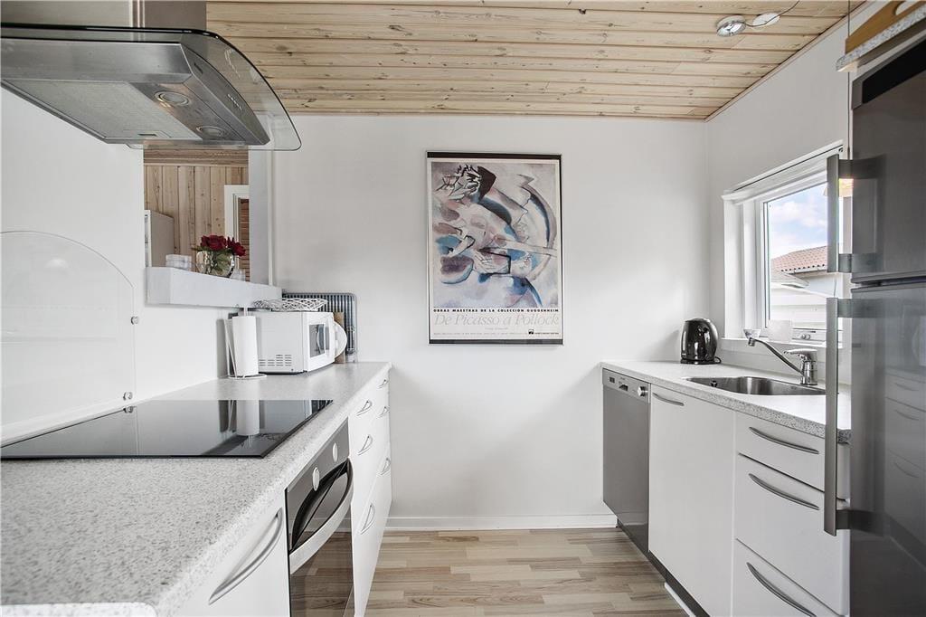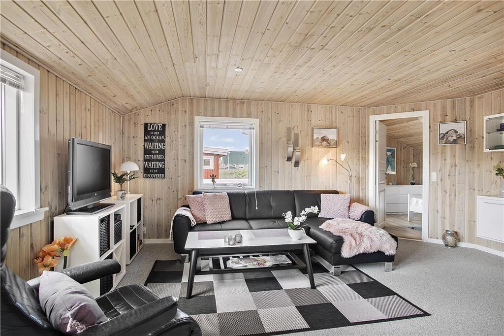 Træd ind i et lyst og stemningsfuldt sommerhus, hvor den super charmerende havestue straks byder dig velkommen med sit naturlige lys og varme farver. Her forenes moderne design med klassiske detaljer, som skaber en rolig og afslappet atmosfære. Du kan mærke hyggen, når du sætter dig foran den indbydende brændeovn, som ikke blot tilfører varme, men også et nostalgisk præg til rummet. De nøje udvalgte materialer og den gennemførte indretning giver en følelse af hjemlighed, hvor alle sanser bliver forkælet. Det er et sted, hvor du med glæde kan tilbringe lange eftermiddage i behagelig stil og lade tankerne flyve væk, mens du nyder den rolige stemning, der præger dette charmerende sommerhus, som er skræddersyet til et ophold for fire personer.