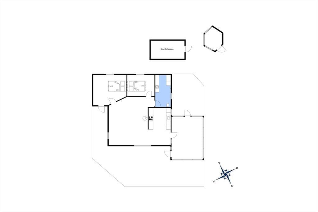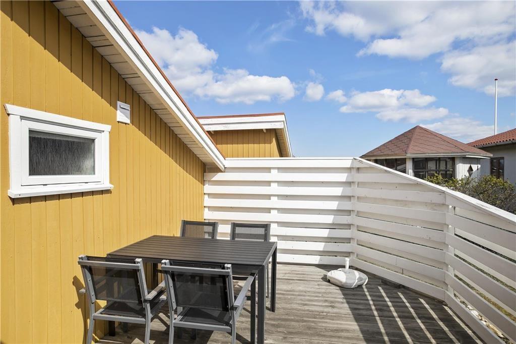 Udenfor venter en afskærmet terrasse, der skaber en privat oase midt i det naturskønne landskab omkring Vorupør. Her kan du trække dig tilbage fra hverdagens larm og lade sanserne få frit spil – forestil dig lyden af stille vind, duften af frisk havluft og følelsen af solens varme på huden. Terrassen er ideel til hyggelige stunder, om det så er med en kop kaffe i de tidlige morgentimer eller med et glas vin, mens solen langsomt forsvinder bag horisonten. Den velanlagte udeplads giver plads til leg, afslapning og samvær med dem, du holder af, og kombinerer privatliv med muligheden for at nyde de vidtstrakte omgivelser, der kendetegner Thy. Det er et perfekt udendørs rum, hvor hver eneste detalje er med til at forstærke følelsen af at være på ferie og nyde livet i fulde drag.