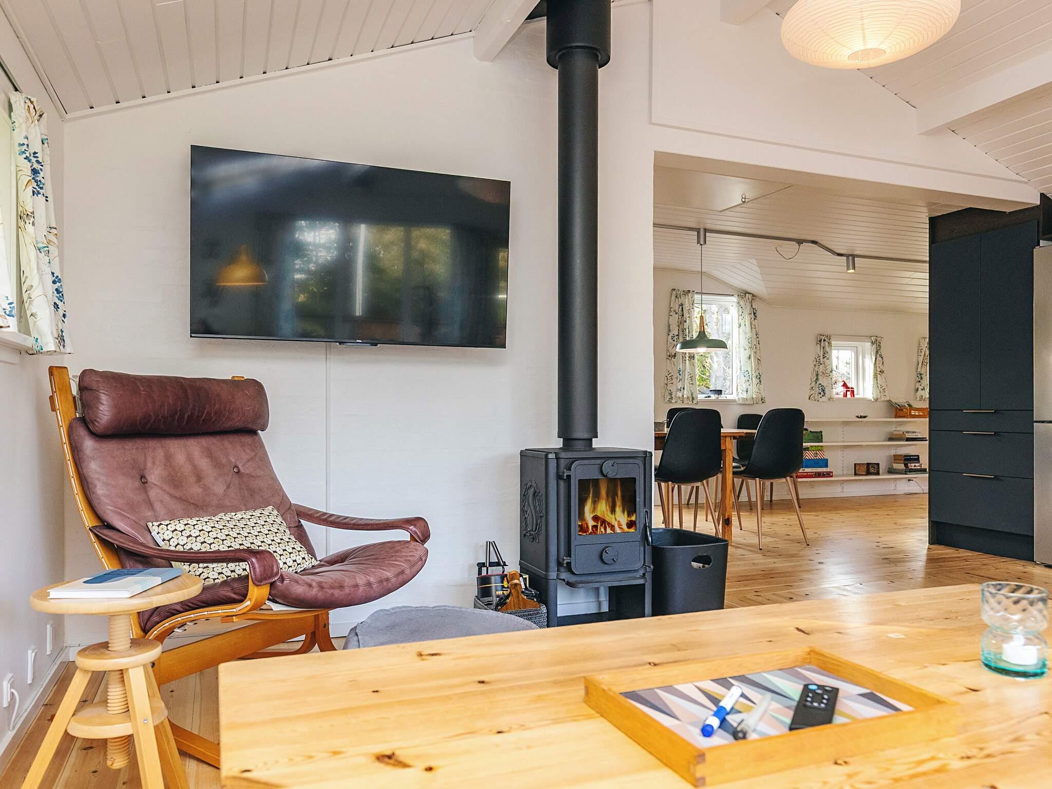 Der er Smart tv i stue samt brændeovn. På terrassen, som er lukket, er der havemøbler og kulgrill.