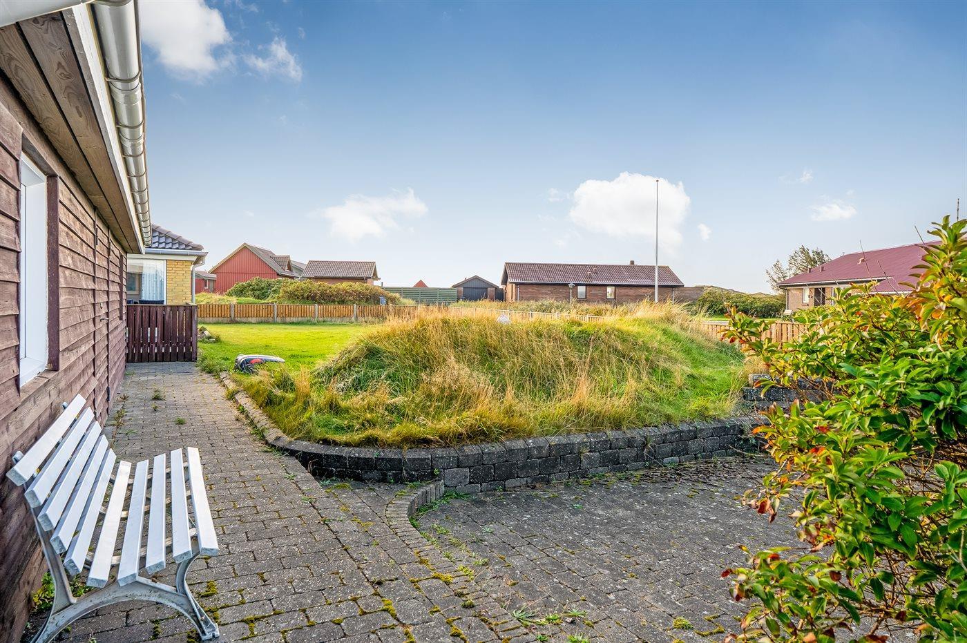 Ferieboligen er beliggende på en 1650 m² stor naturgrund. Der er 500 m til havet. Nærmeste forretning er beliggende i en afstand af 300 m. Til ferieboligen hører åbent terrasseareal. Desuden er der overdækket terrasse. Parkering ved ferieboligen.