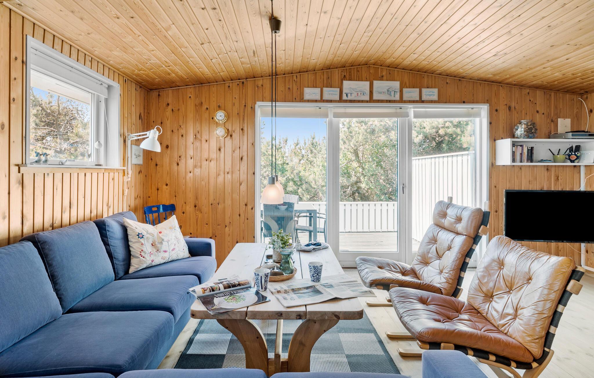 Charmerende træhus tæt på Vorupør Strand og Vesterhavet med lys stue, terrasse og naturudsigt.