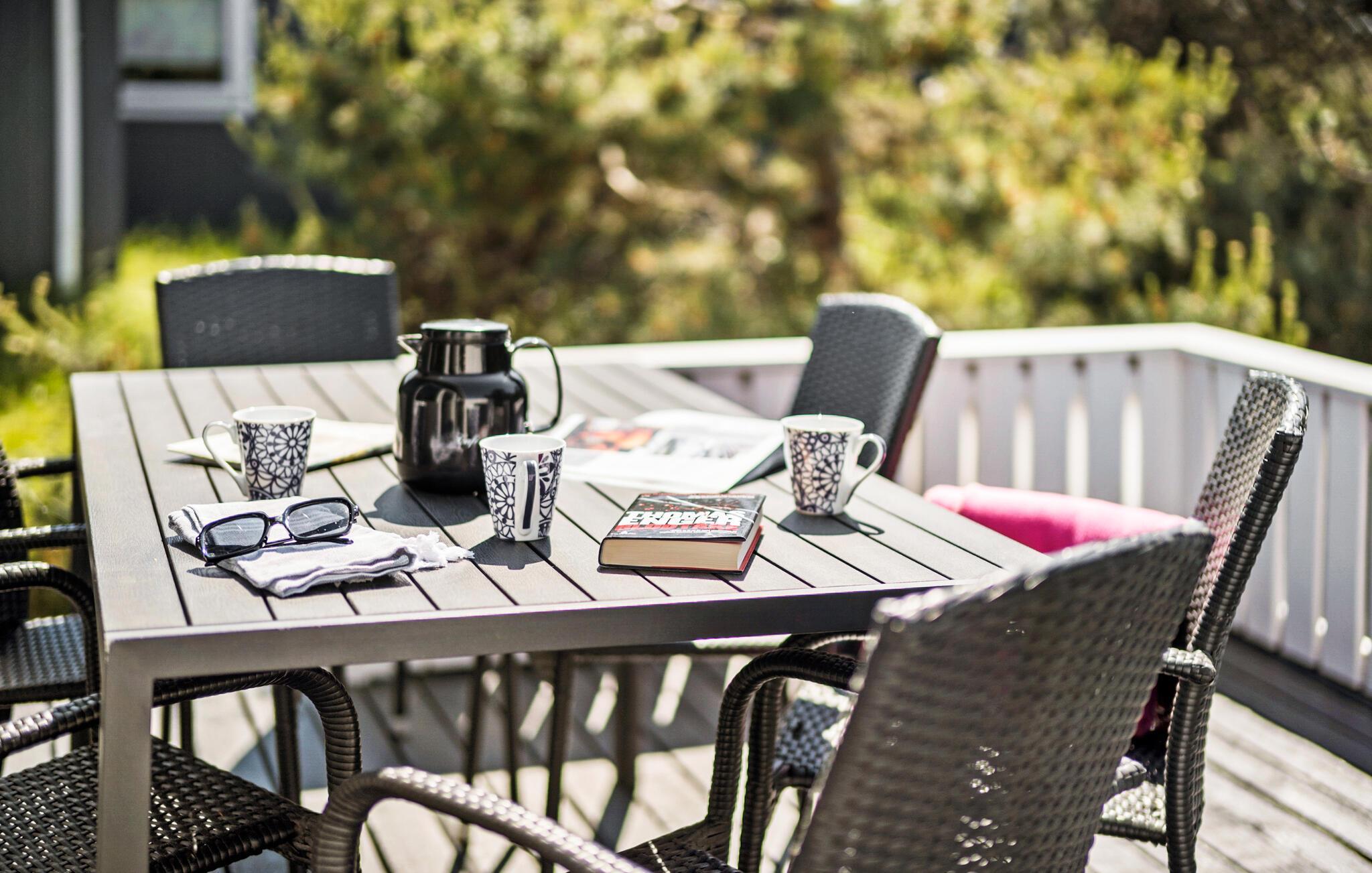 På de smukke sommerdage kan i nyde solen og privatlivet på den skønne terrasse. Begynd dagen med en god kop kaffe og lad børnene lege i haven, inden I tager på udflugt. Hvis vejret holder hele dagen, kan I købe lidt lækkert med hjem til grillen og lade aftenen gå på hæld med gode bøffer og et glas vin, mens I lægger planer for de kommende dage.