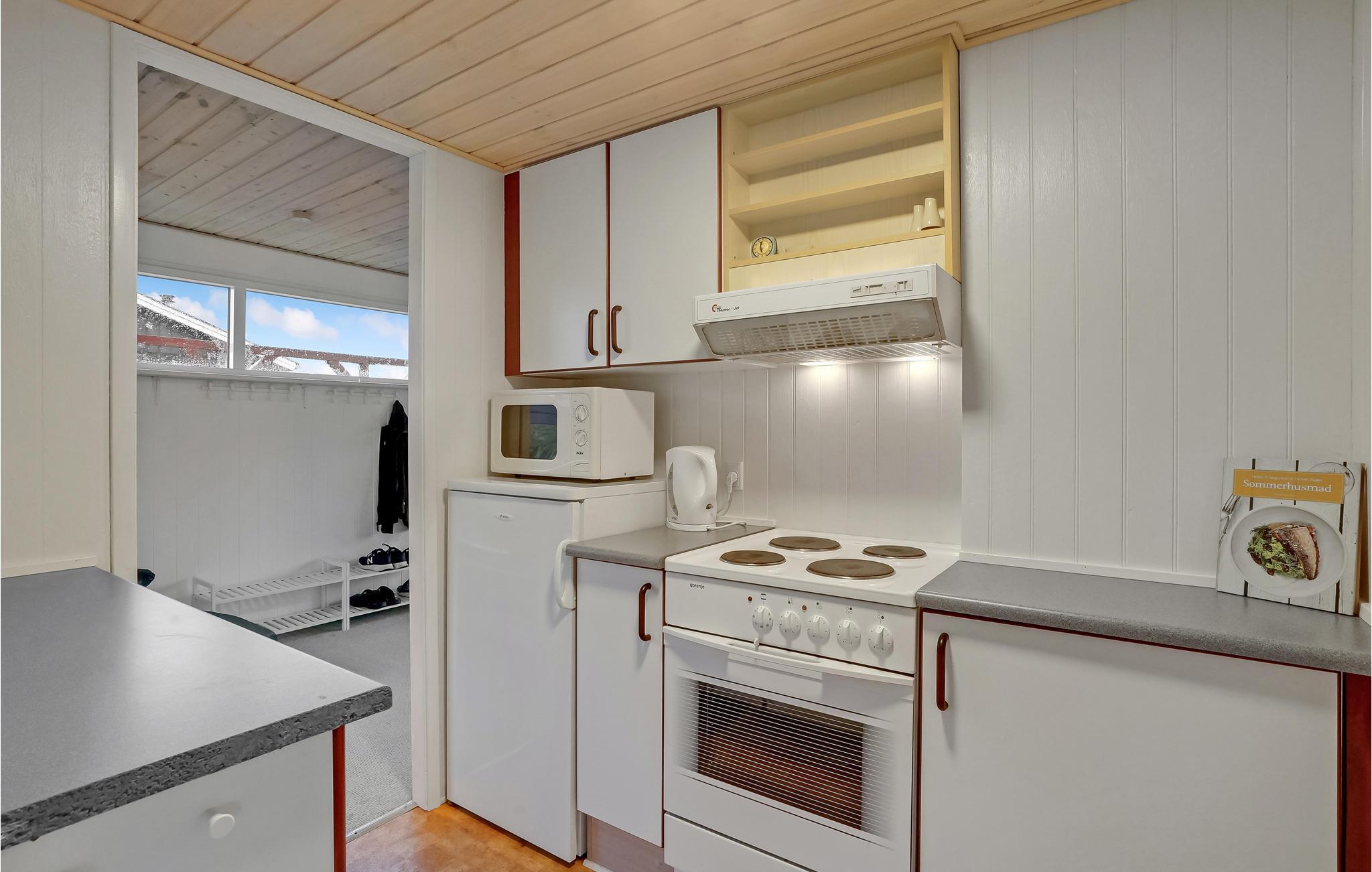 I charmerende Vorupør finder I dette attraktive sommerhus. Huset er pænt og minimalistisk indrettet i en lys farveskala. Stuen bliver rammen om dagens hyggelige måltider og afslapning i sofaen efter en lang dag ude i den friske, vestjyske luft. I årets kolde måneder er det ekstra hyggeligt med varmen fra brændeovnen.