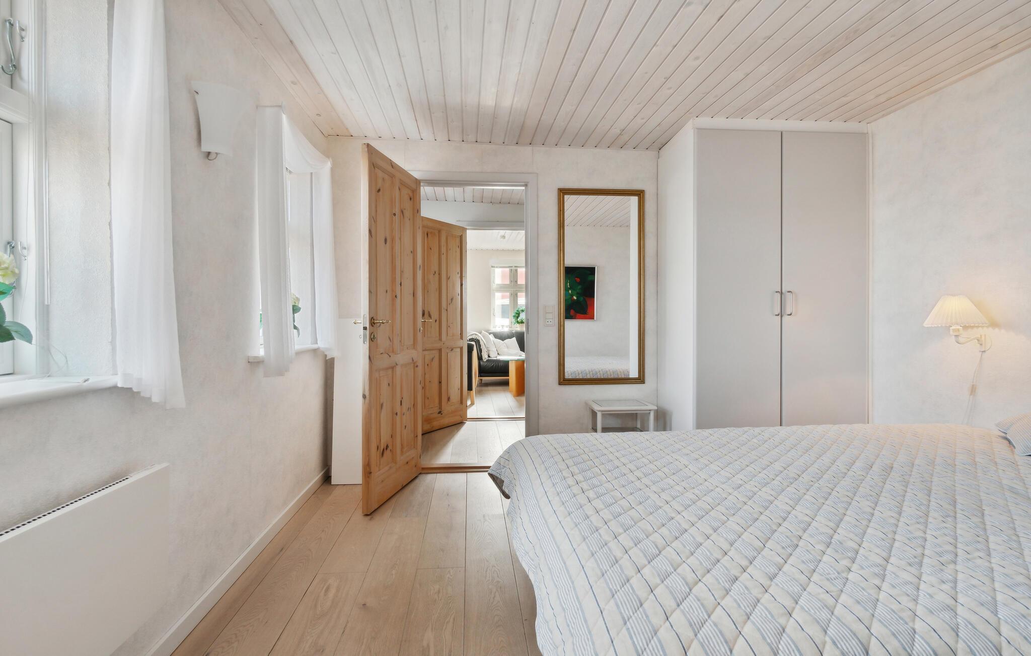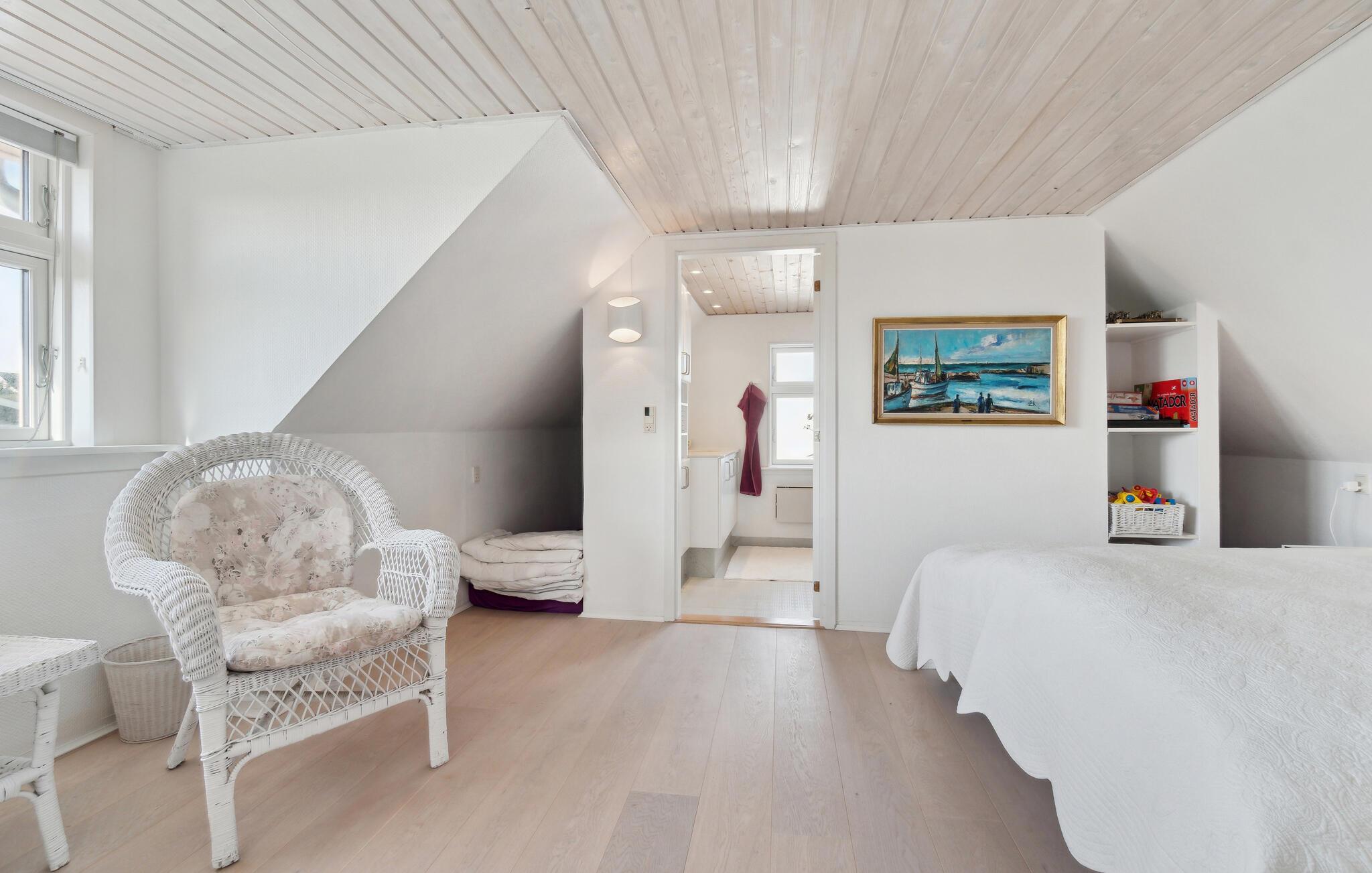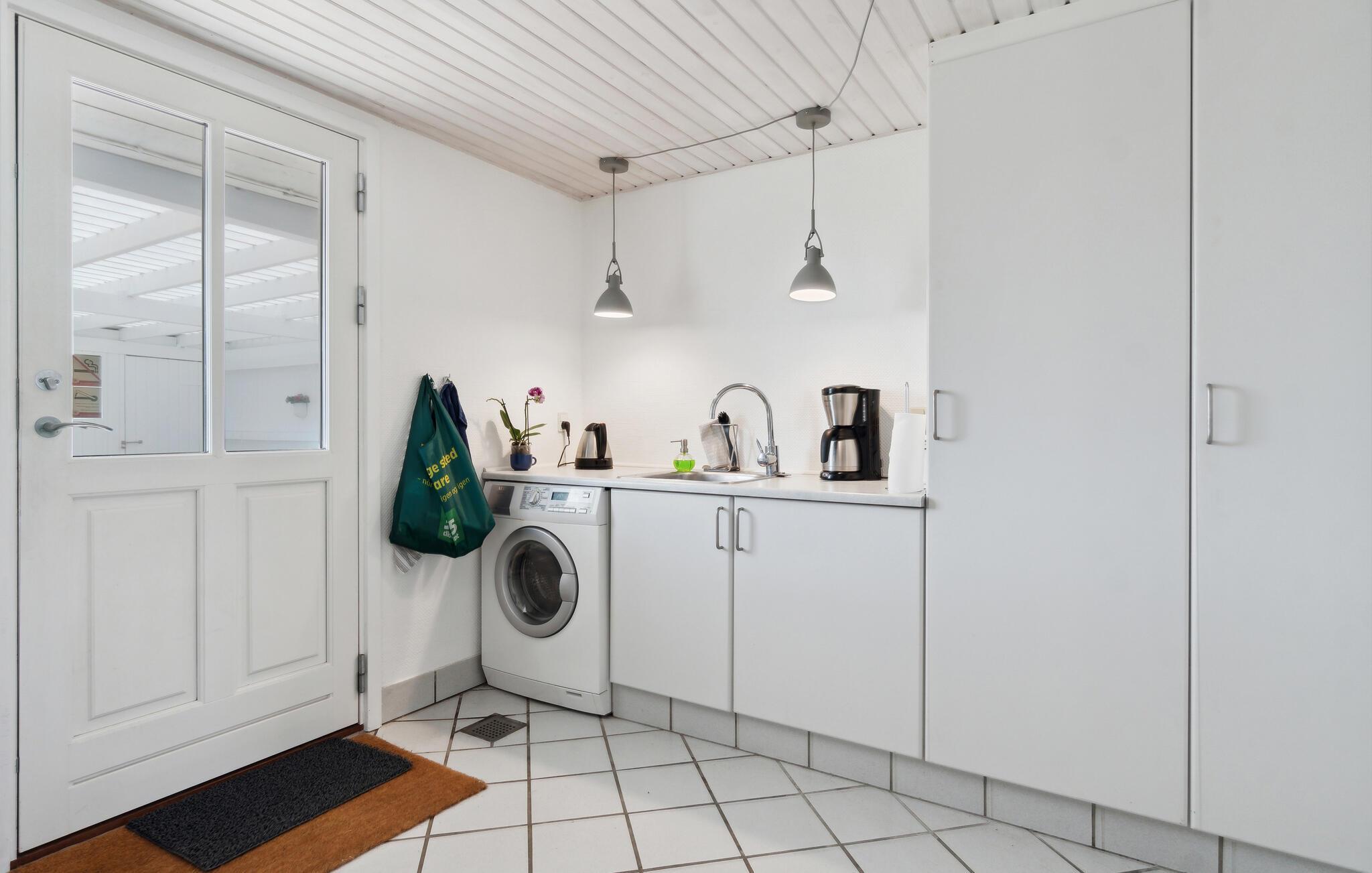 Dette rummelige feriehus byder på plads nok til hele familien og skaber det perfekte miljø for en afslappende ferie. Begynd dagene med morgenmad ved spisebordet i det smukke køkken, mens I sammen lægger planer for den kommende dag. Bagefter inviterer den hyggelige stue med sit indbydende sofahjørne til at blive hængende.