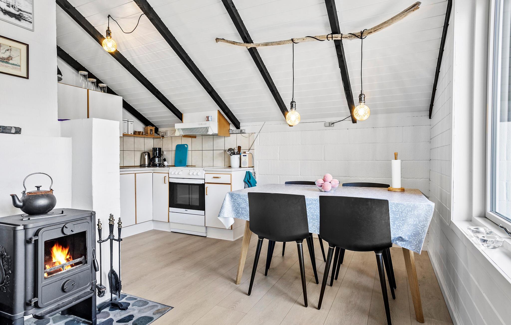 Nyd jeres ophold i dette charmerende feriehus på den jyske vestkyst. Så snart I ankommer til Vorupør Strand, vil I mærke den venlige og lette atmosfære i Dette hus. Det stilrene interiør harmonerer godt med husets mørke træfacade. Forbered en lækker morgenmad i det åbne køkken og brug spisebordet til at diskutere jeres planer for jeres feriedag over måltider. Terrassen tilbyder det optimale sted at nyde freden og roen og fritiden med et udendørs måltid eller en kop te, beskyttet mod vinden. Den indbydende opholdsstue med dens komfortable sofa og varmende brændeovn lægger op til at tilbringe afslappende stunder. Gå ikke glip af muligheden for at besøge stranden ikke langt væk. Hele vestkysten er kendt for sine smukke sandstrande, som er optimale til forfriskende badeture og afslappende timer. Tag på en spændende ravjagt eller tag en afstikker til maleriske Agger, som er kendt for sine typiske sorte træhuse. Oplev regionens mangfoldighed og læg hverdagen bag jer.