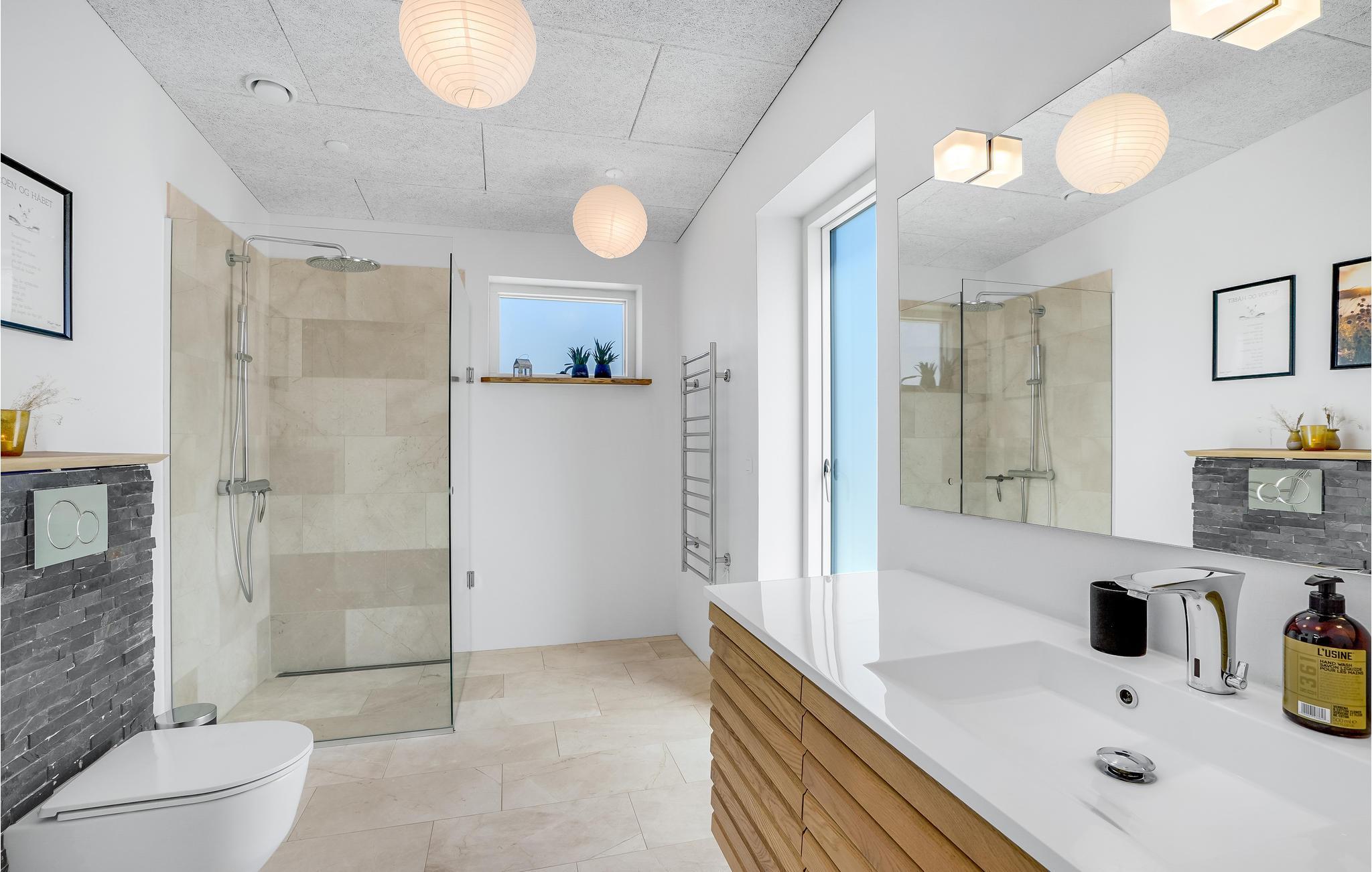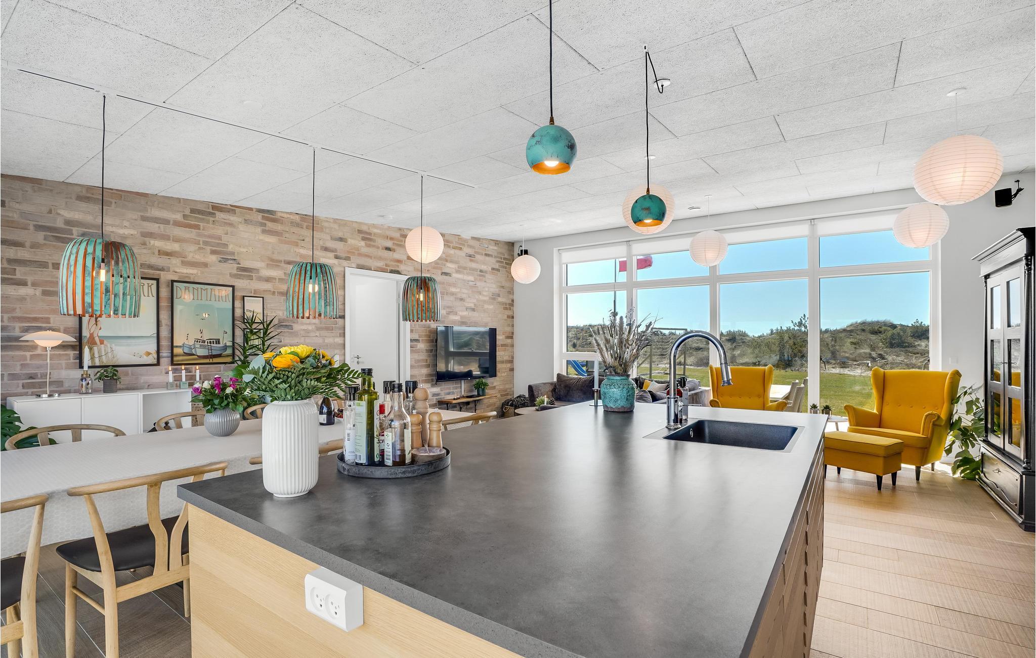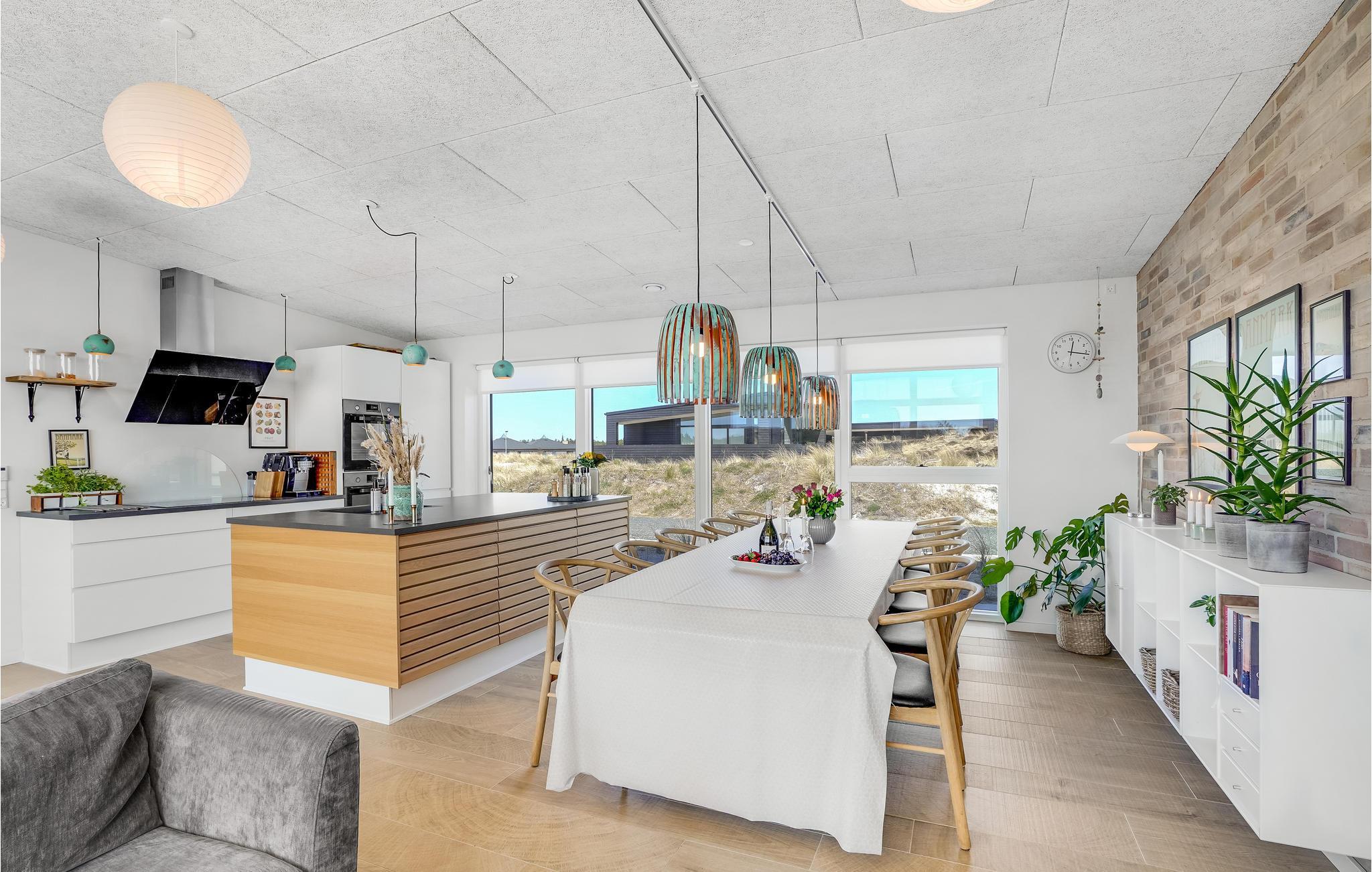 Glæd jer til en ferie i Vorupør, som I virkelig vil kunne huske. Her ligger dette herlige hus, som er indlejret i et enestående landskab og emmer af maksimal komfort. Glæd jer til at samles omkring spisebordet og tag et spil bordtennis eller billard i aktivitetsrummet, mens maden bliver klar. Slip børnene løs i haven, hvor der står legestativer, mens I læner jer tilbage med en kop kaffe på terrassen. Efter en dag fyldt med eventyr er det ren luksus at sætte sig i whirlpoolen med en kold drink ved hånden, og i efterårssæsonen kan I få varmen i saunaen efter en lang gåtur ved vandet.