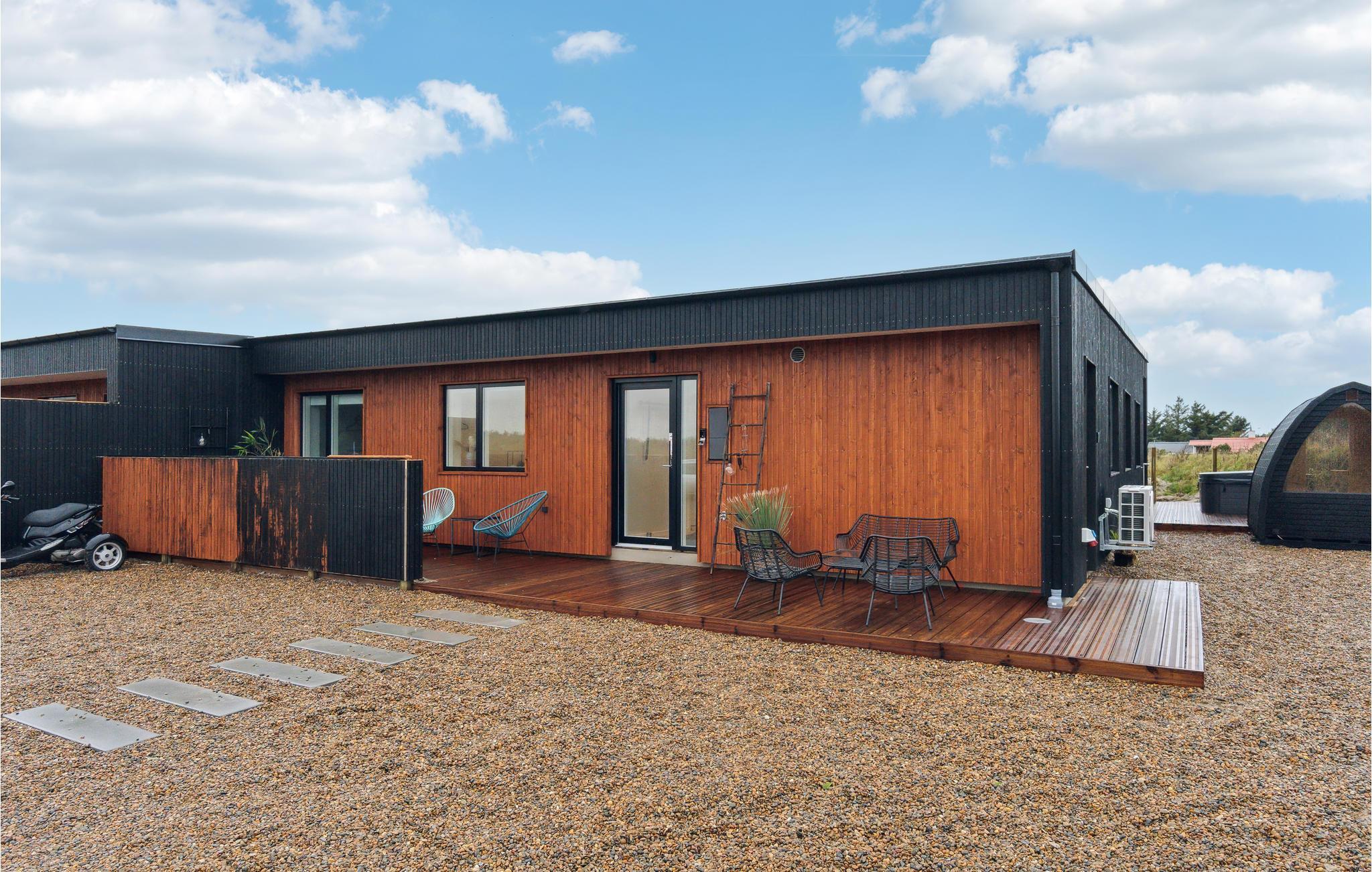 Oplev komfort og luksus i et moderne feriehus med wellness og aktivitetsrum i Vorupør.