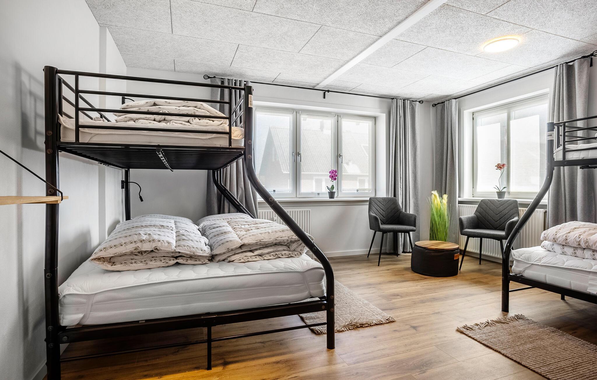 Soveværelse (nr. 1) - 4 Sovepladser. (Dobbeltseng(e)). 2 Sovepladser. (Etageseng(e)).