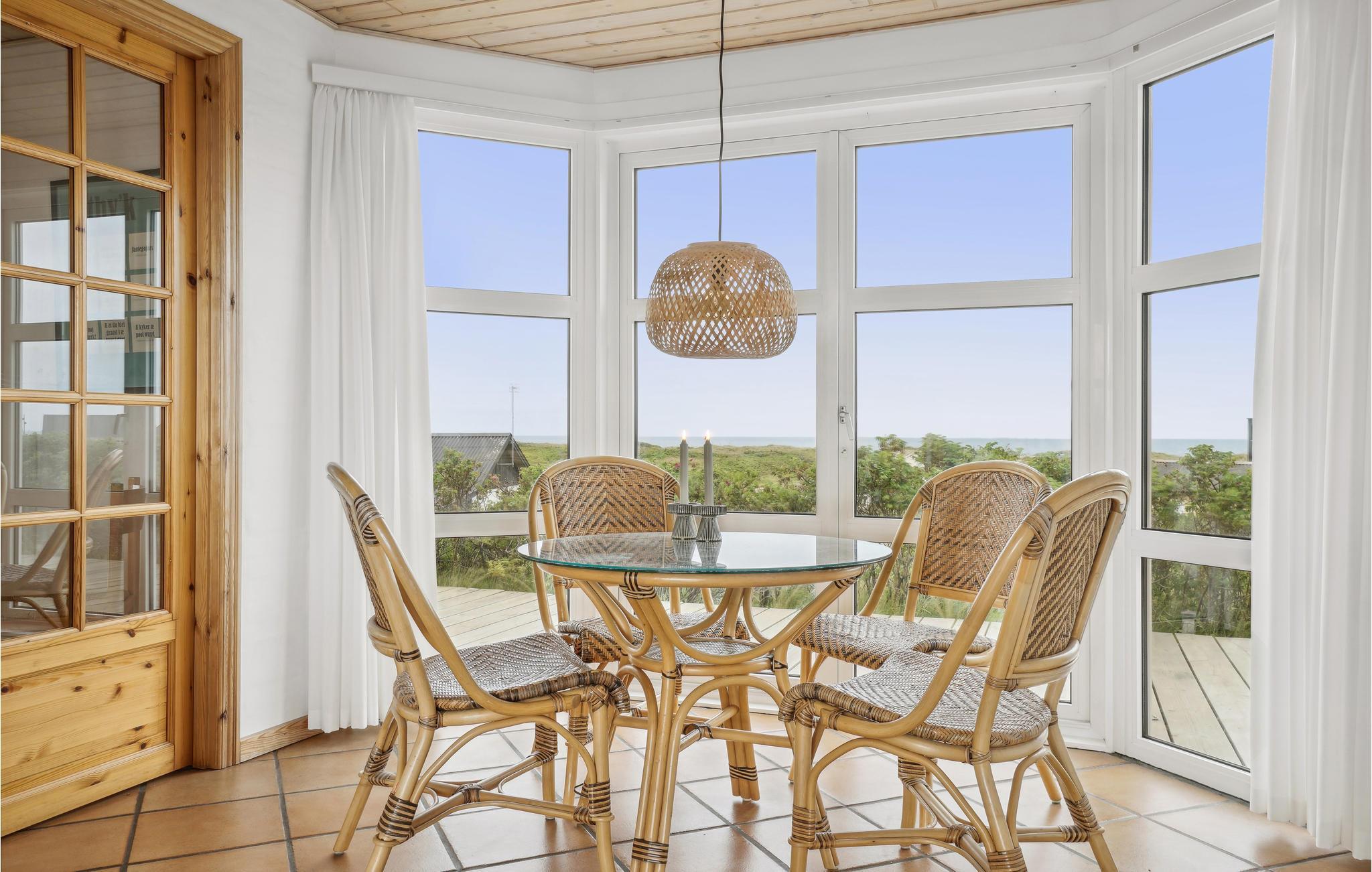I får en helt særlig og uforglemmelig placering i dette dejlige murstenshus, som har en høj beliggenhed med fantastisk udsigt og kun nogle få skridt ned til vandet. Der er et skønt lys og en meget rolig atmosfære i huset, som ligger omkranset af et smukt kystlandskab, så I kan nyde dagens måltider med udsigt til klitter og hybenbuske. Fyld dagene med friske gåture ved vandet og i naturen og vend hjem til det hyggelige hus, hvor I kan få varmen i saunaen eller spabadet. Sæt jer derefter til rette med en god bog eller et brætspil i stuen og tilbring en stille stund, mens ilden blusser stemningsfuldt i brændeovnen.